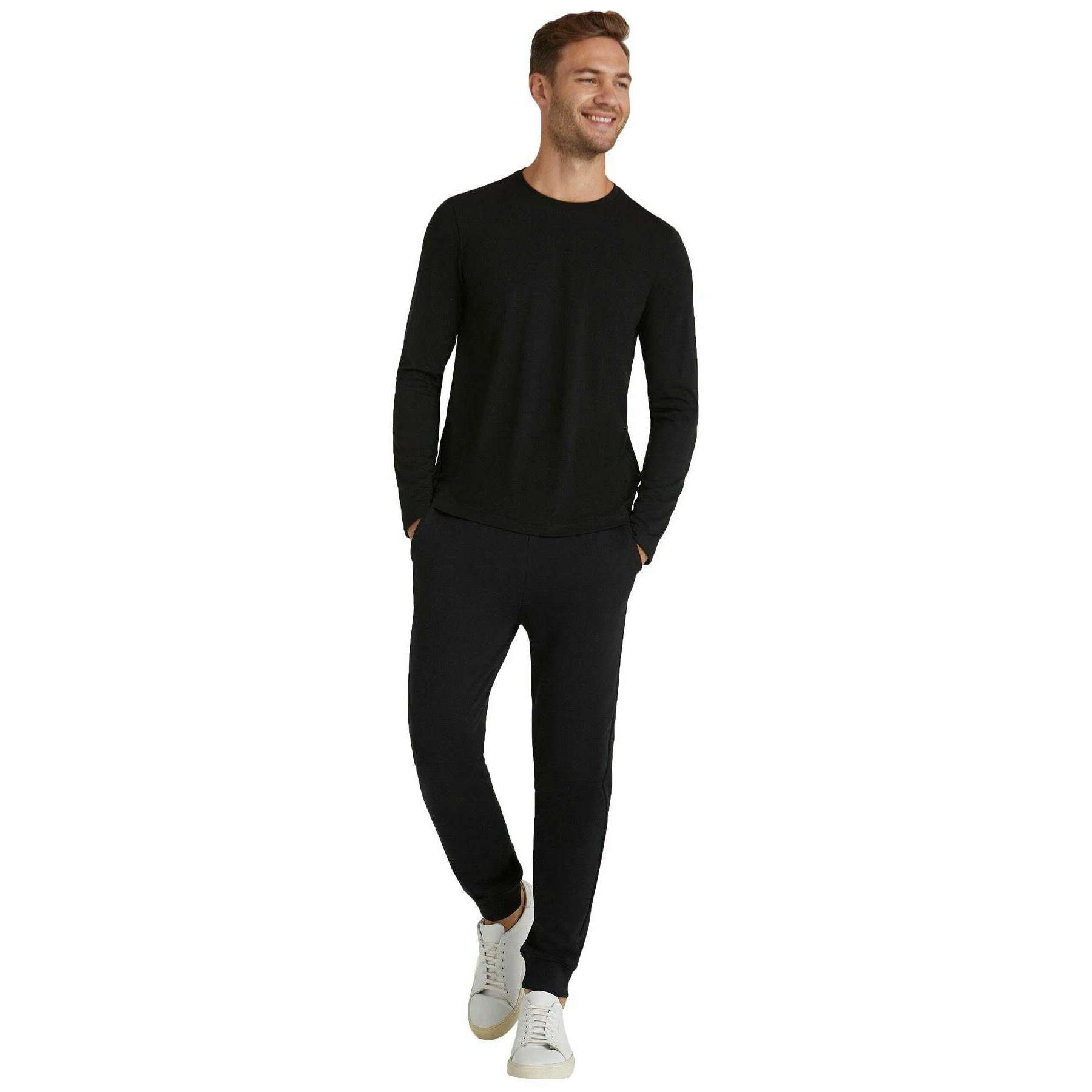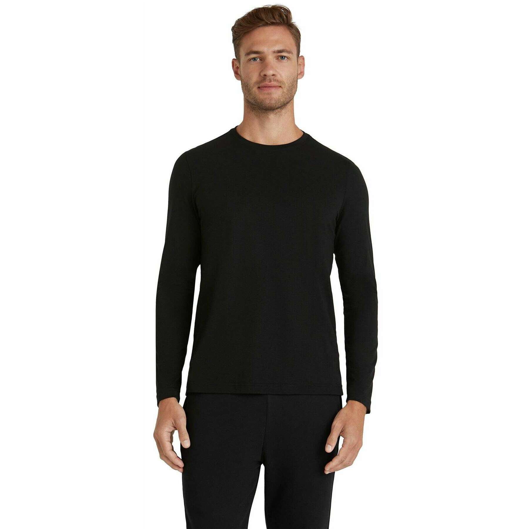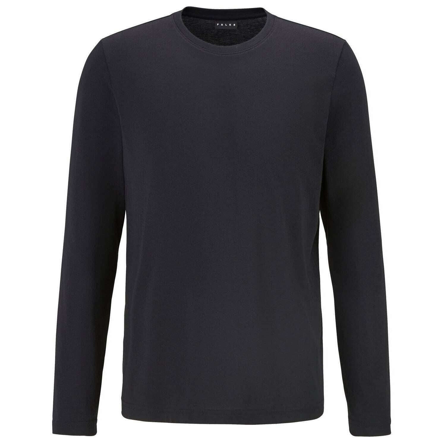Camiseta Falke Pima Jersey De Manga Larga Con Cuello Redondo - Negro