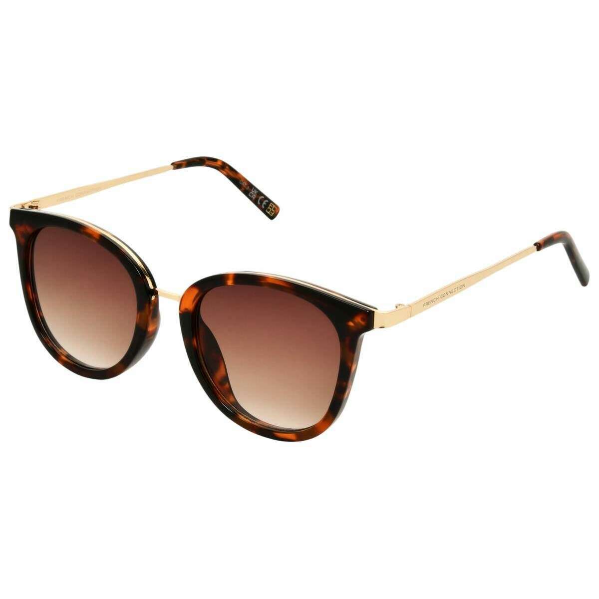 Gafas de sol redondas con ribete de metal suave de French Connection - Marrón carey/dorado