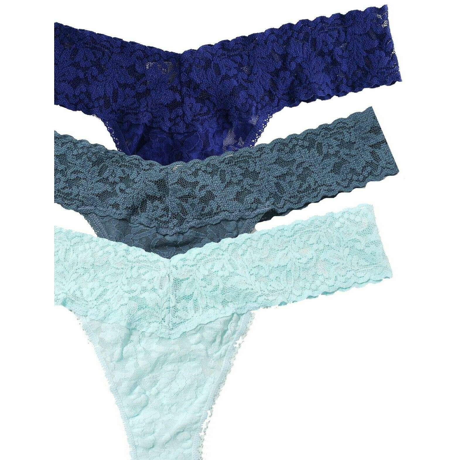 Pack de 3 tangas de encaje de talle bajo Signaure de Hanky Panky - Azul odisea/Nube de tormenta/Celeste