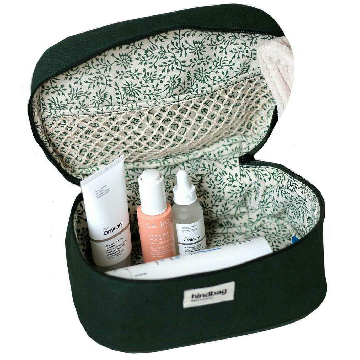 El diseñador Hindbag le ha traído esta bolsa de algodón 100% orgánica unisex utilizando tonos verdes del bosque. Mide 13.5 cm (altura) x 16 cm (ancho) x 25 cm (profundidad). Todas las bolsas vienen completas con empaque de sacos traseros. La bolsa de tocador Gaspard de la bolsa trasera: Forest Green ofrece a los viajeros y usuarios cotidianos por igual una forma conveniente y elegante de mantener sus artículos de tocador organizados y accesibles. La red interior es perfecta para organizar artículos de tocador, cosméticos y otros artículos personales. Disponible en una variedad de colores, este accesorio de moda representa una fusión armoniosa de funcionalidad y estética, que atiende a quienes valoran el estilo y la practicidad en su viaje.