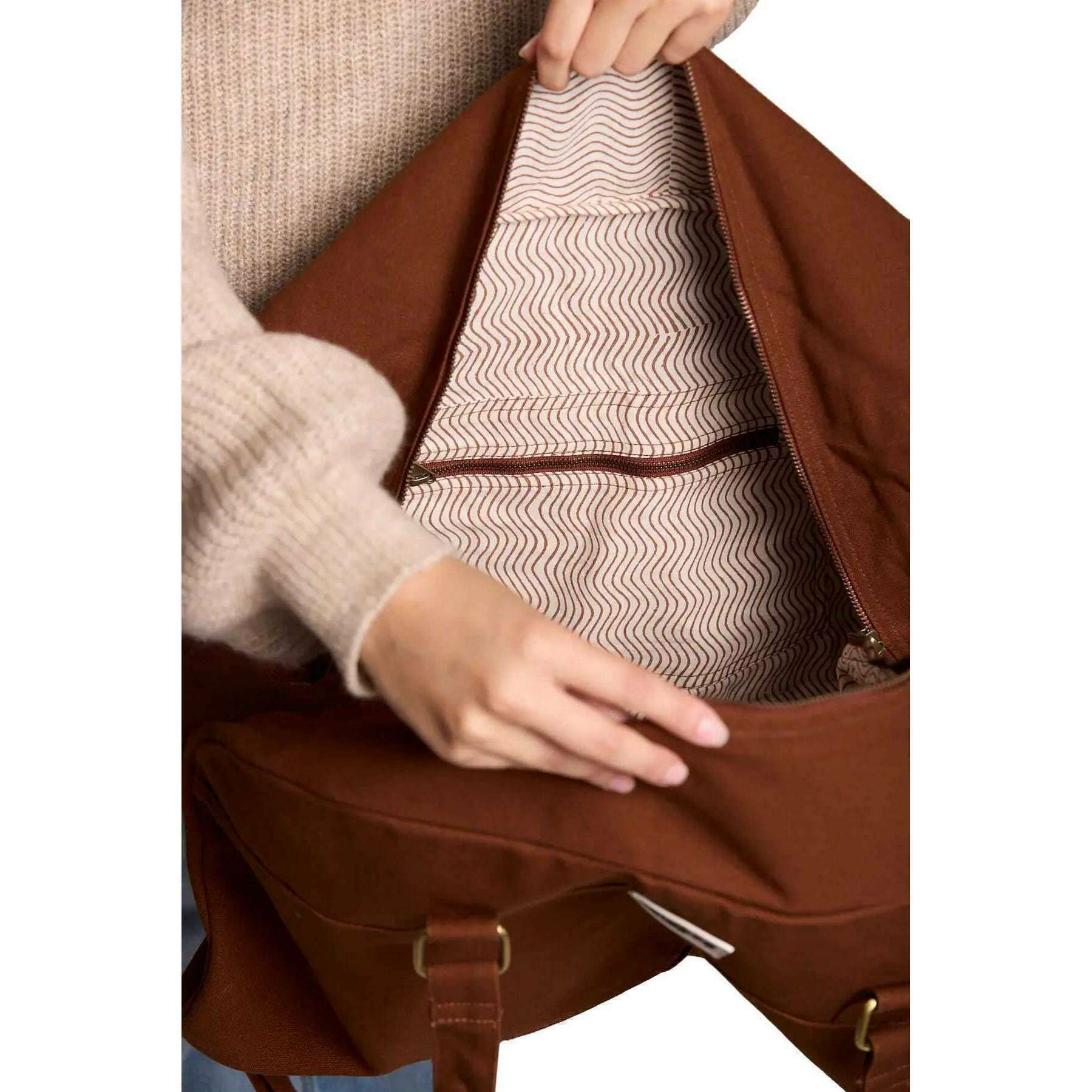 Esta gran bolsa de viaje de unisex Yves ha sido hecha de algodón 100% orgánico, presentado en un color marrón y es de la marca Hindbag. Mide 33 cm (altura) x 54 cm (ancho) x 24 cm (profundidad). Todas las bolsas vienen completas con empaque de sacos traseros. La bolsa de viaje grande de la bolsa trasera: chocolate marrón es una opción espaciosa y ecológica para los viajeros. Hecho a partir de algodón orgánico grueso y certificado por GOTS, esta bolsa presenta múltiples bolsillos para la organización, un cierre seguro de cremallera y un forro interno impreso que agrega un toque de elegancia. Con sus manijas y una gran correa de hombro ajustable, esta bolsa se puede transportar fácilmente a mano o en el hombro.