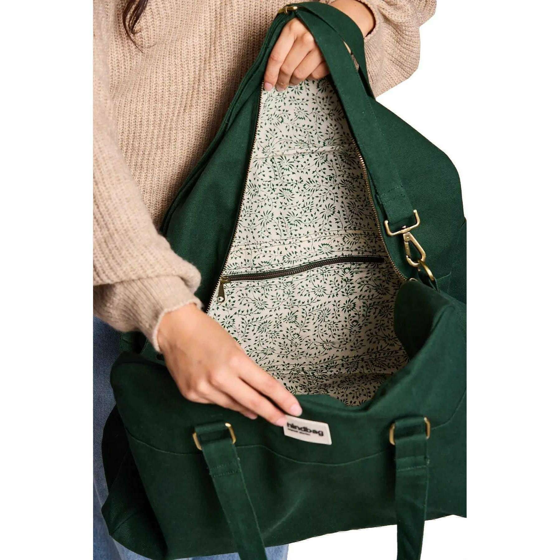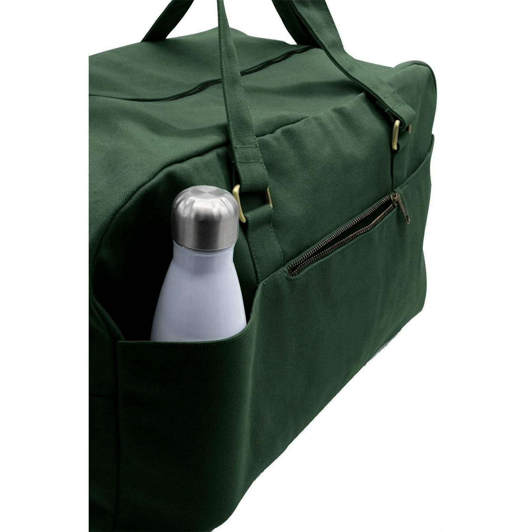 Esta gran bolsa de viaje de unisex Yves ha sido hecha de algodón 100% orgánico, que se presenta en un color verde y proviene de la marca Hindbag. Mide 33 cm (altura) x 54 cm (ancho) x 24 cm (profundidad). Todas las bolsas vienen completas con empaque de sacos traseros. La bolsa de viaje grande de la bolsa trasera: Forest Green es una opción espaciosa y ecológica para los viajeros. Hecho a partir de algodón orgánico grueso y certificado por GOTS, esta bolsa presenta múltiples bolsillos para la organización, un cierre seguro de cremallera y un forro interno impreso que agrega un toque de elegancia. Con sus manijas y una gran correa de hombro ajustable, esta bolsa se puede transportar fácilmente a mano o en el hombro.