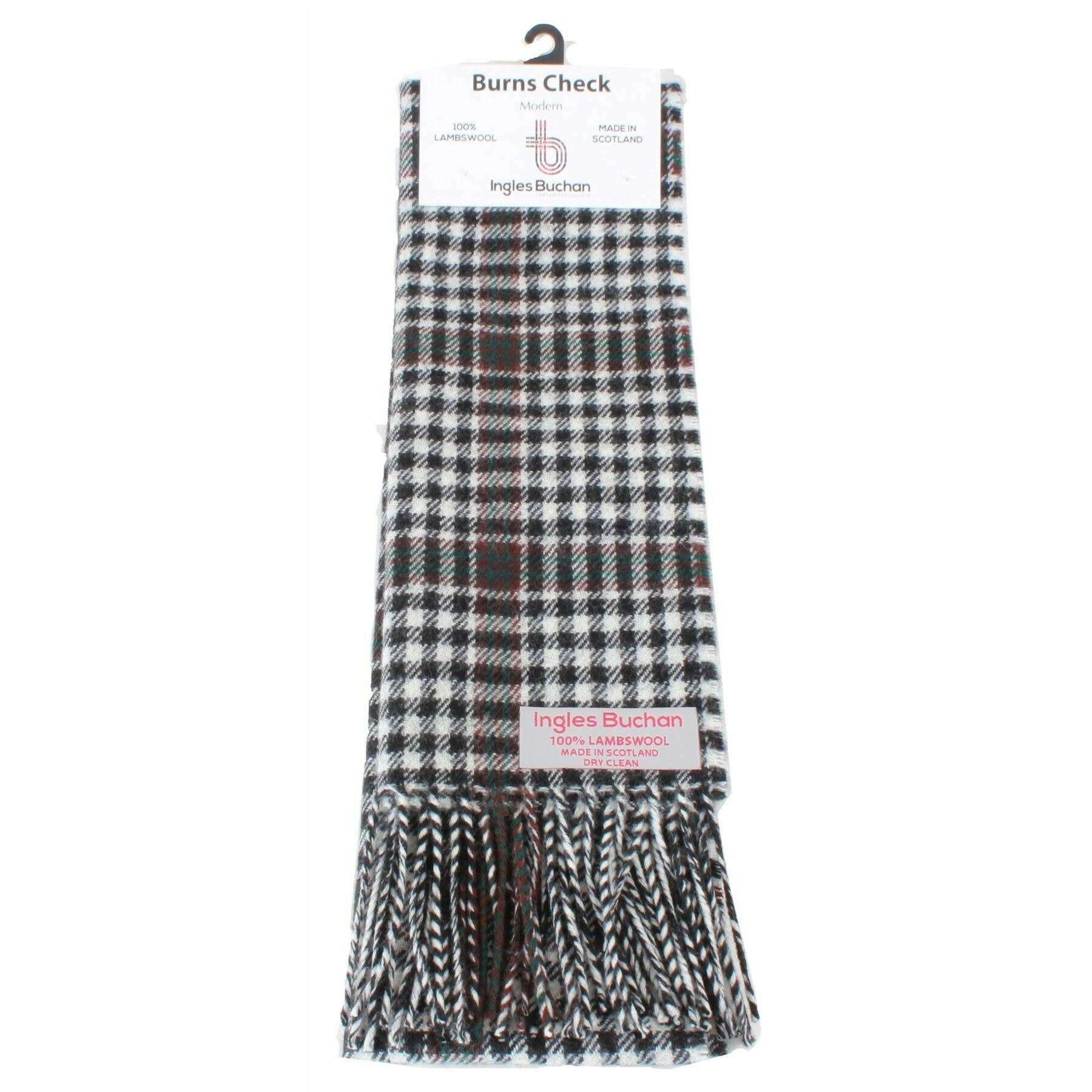 Ingles Buchan Burns Check Bufanda moderna de lana de cordero - Blanco/Negro/Verde