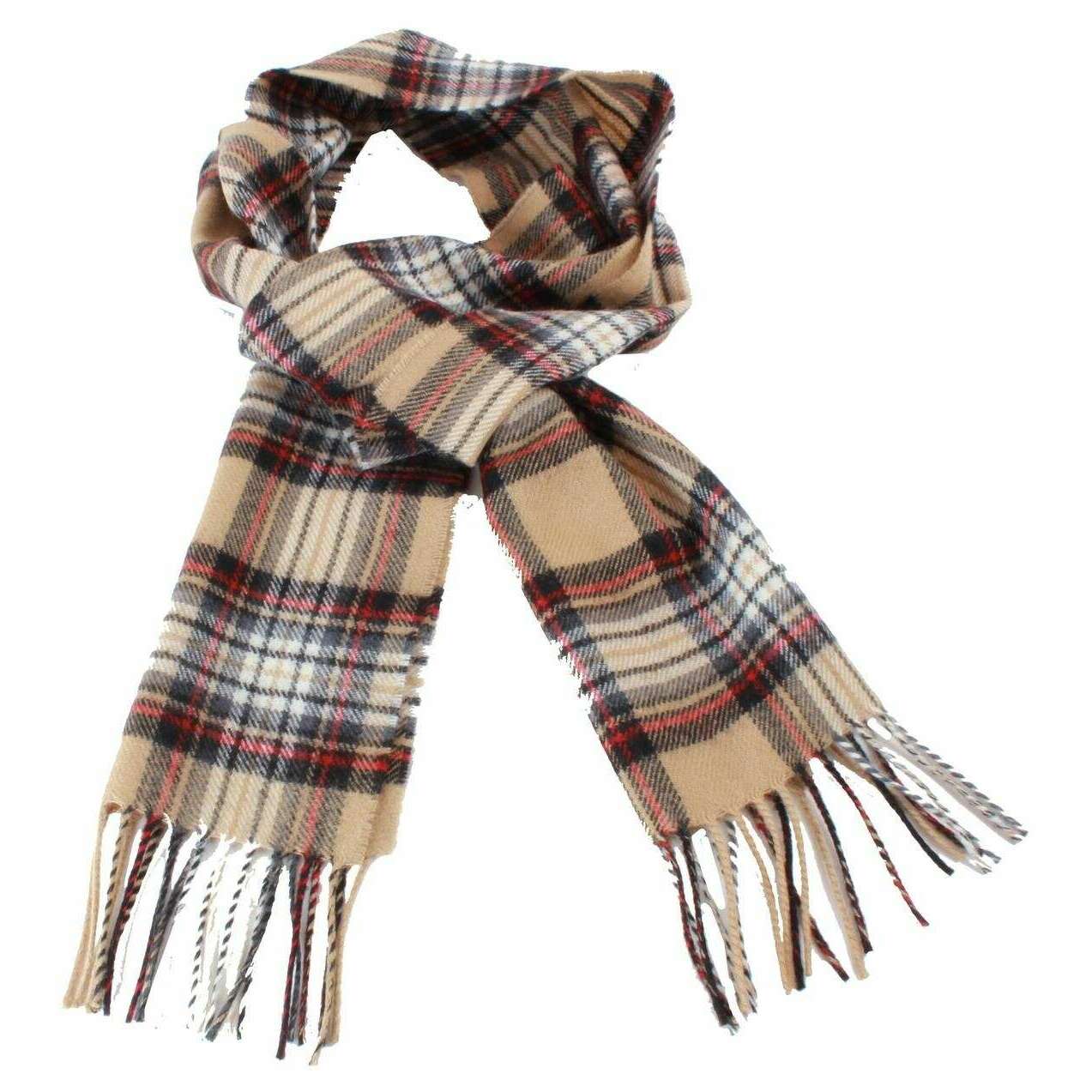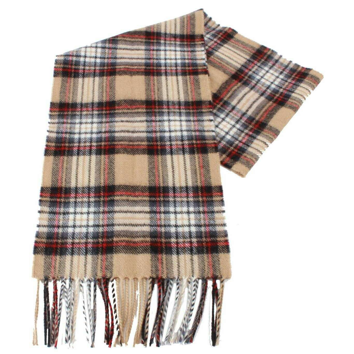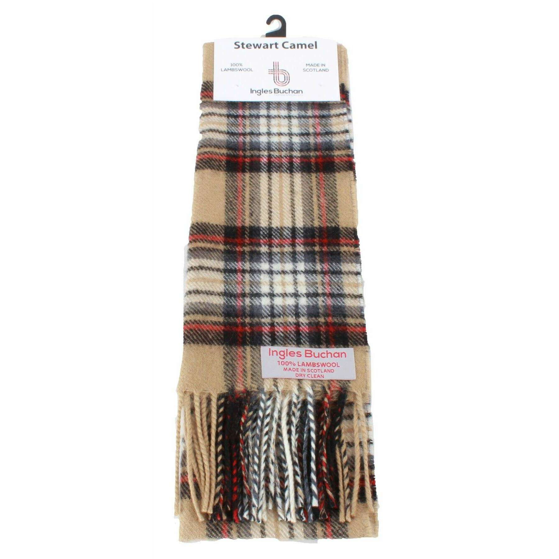 Ingles Buchan Stewart Camel Bufanda moderna de lana de cordero - Beige/Negro/Rojo