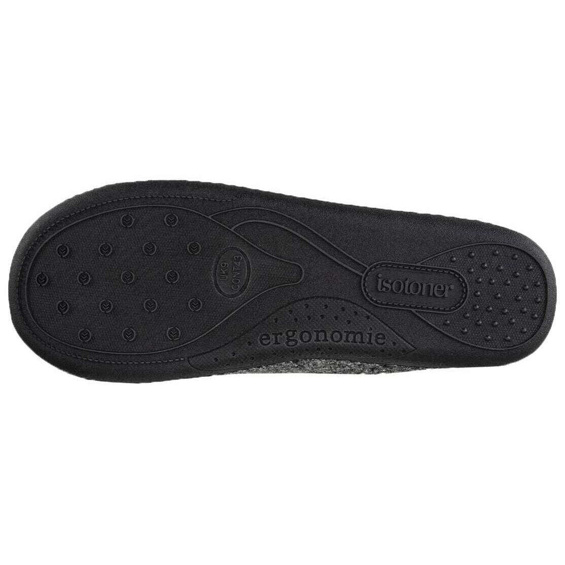 Estas pantuflas de fieltro para hombre de la marca Isotoner están hechas de 60% poliéster y 40% lana y se presentan en color gris. Además, las pantuflas grises están diseñadas con un patrón liso. Se recomienda lavarlas a mano únicamente para mantener estas pantuflas en buenas condiciones. Todas las zapatillas se entregan completas con un embalaje de isotóner. Las pantuflas Isotoner Felt Full Back - Gris, clásicas y modernas, ofrecen una comodidad excepcional e inmejorable para durar. Este par cuenta con cómoda espuma viscoelástica y tecnología de amortiguación tipo almohada con una capa adicional en el talón para mayor soporte. Para garantizar un uso seguro, en la parte delantera de este par hay un tirador para una sensación ajustable. Acabado con una suela ergo dot duradera.