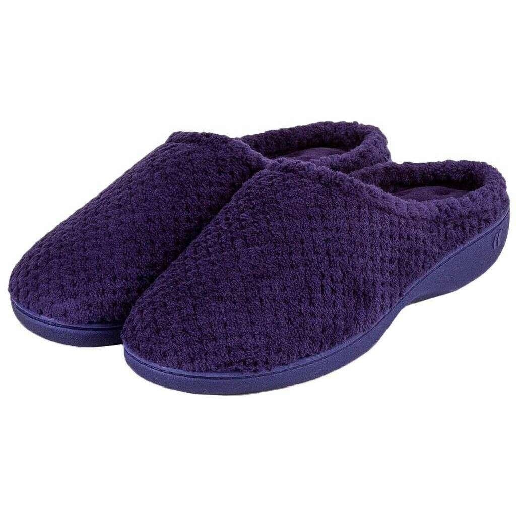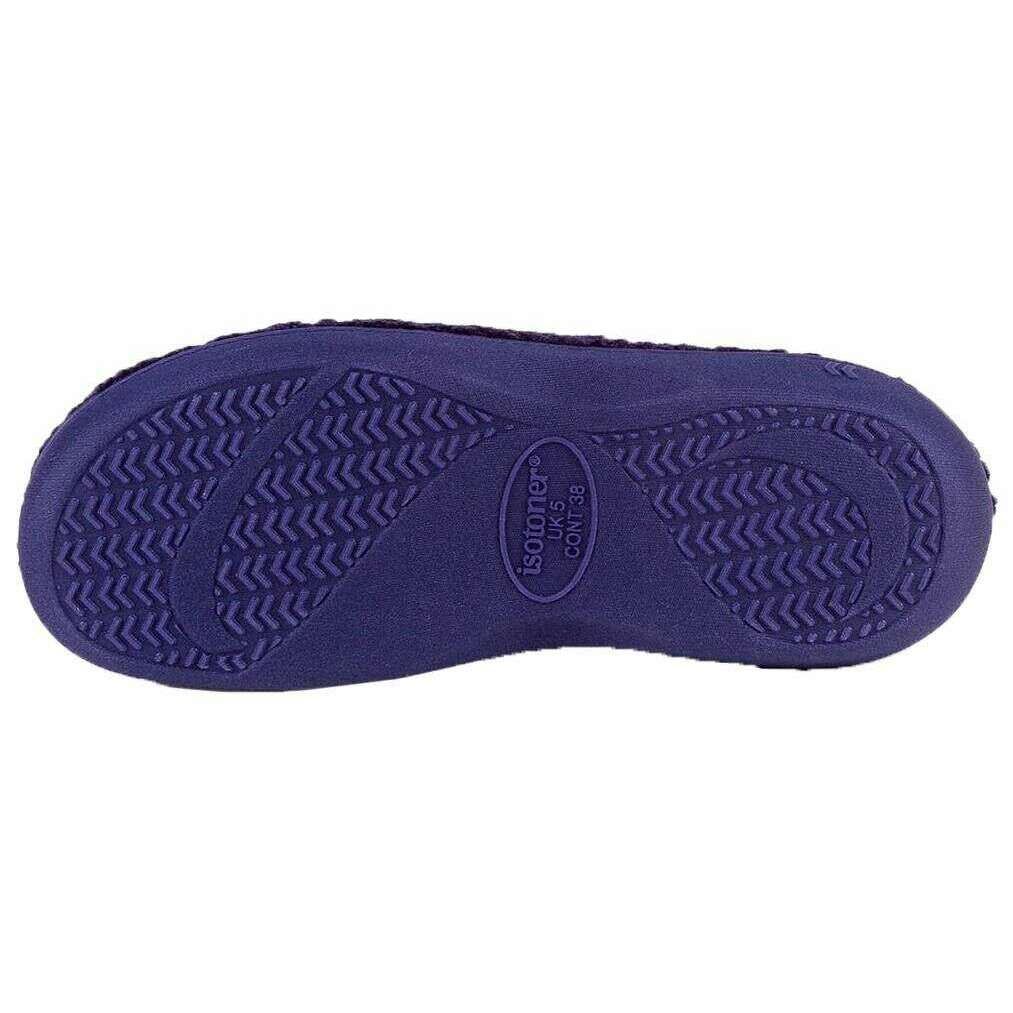 Estas pantuflas tipo mule de felpa tipo palomitas de maíz para mujer de la marca Isotoner están hechas de 100% poliéster y se presentan en color azul marino. Además, las pantuflas azul marino están diseñadas con un patrón liso. Se recomienda lavar a máquina a 30 grados para mantener estas pantuflas en buenas condiciones. Todas las zapatillas se entregan completas con un embalaje de isotóner. Las pantuflas Isotoner Popcorn Terry Mule - Azul marino ofrecen comodidad, soporte y calidez excepcionales. Con espuma con memoria de confort envolvente 360 ​​y tecnología acolchada con una capa de espuma, se sentirá como si estuviera caminando sobre una nube con la suela extra secreta para brindar soporte al talón, el arco y los dedos de los pies. Este estilo de mula mantendrá tus pies agradables y calentitos con los materiales suaves y esponjosos y la cobertura del pie, a la vez que es transpirable con la espalda abierta.