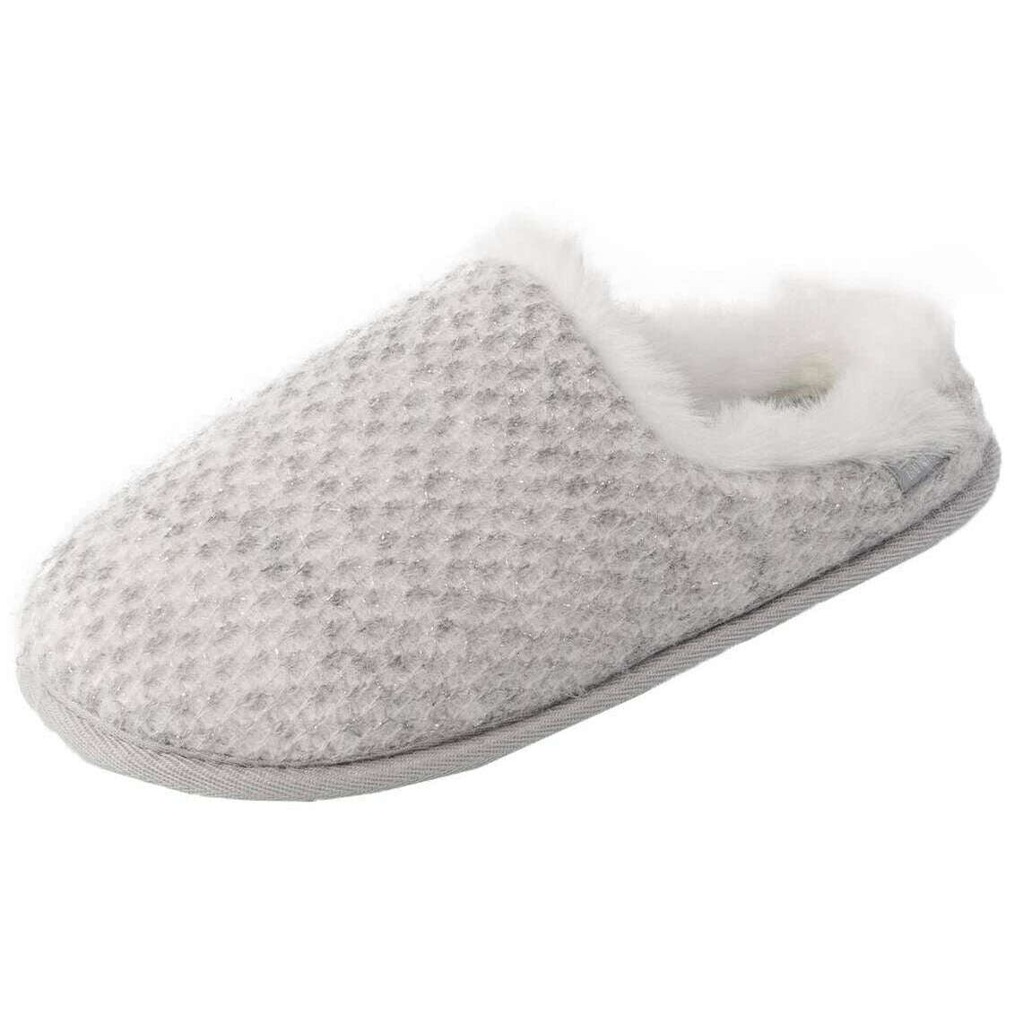Estas pantuflas estilo mules de punto brillante para mujer de la marca Isotoner están hechas de 45% acrílico, 40% poliéster y 15% lana y se presentan en gris. Además, las pantuflas de color gris claro están diseñadas con un patrón liso. Se recomienda lavarlas a mano únicamente para mantener estas pantuflas en buenas condiciones. Todas las zapatillas se entregan completas con un embalaje de isotóner. Las pantuflas Isotoner Sparkle Knit Swept Back - Gris claro ofrecen comodidad, soporte y calidez excepcionales. Con tecnología acolchada tipo almohada con una capa en el talón, te sentirás como si estuvieras caminando sobre una nube con soporte para los talones, los arcos y los dedos de los pies. Este estilo de mula mantendrá tus pies agradables y calentitos con los materiales suaves y esponjosos y la cobertura del pie, a la vez que es transpirable con la espalda abierta.