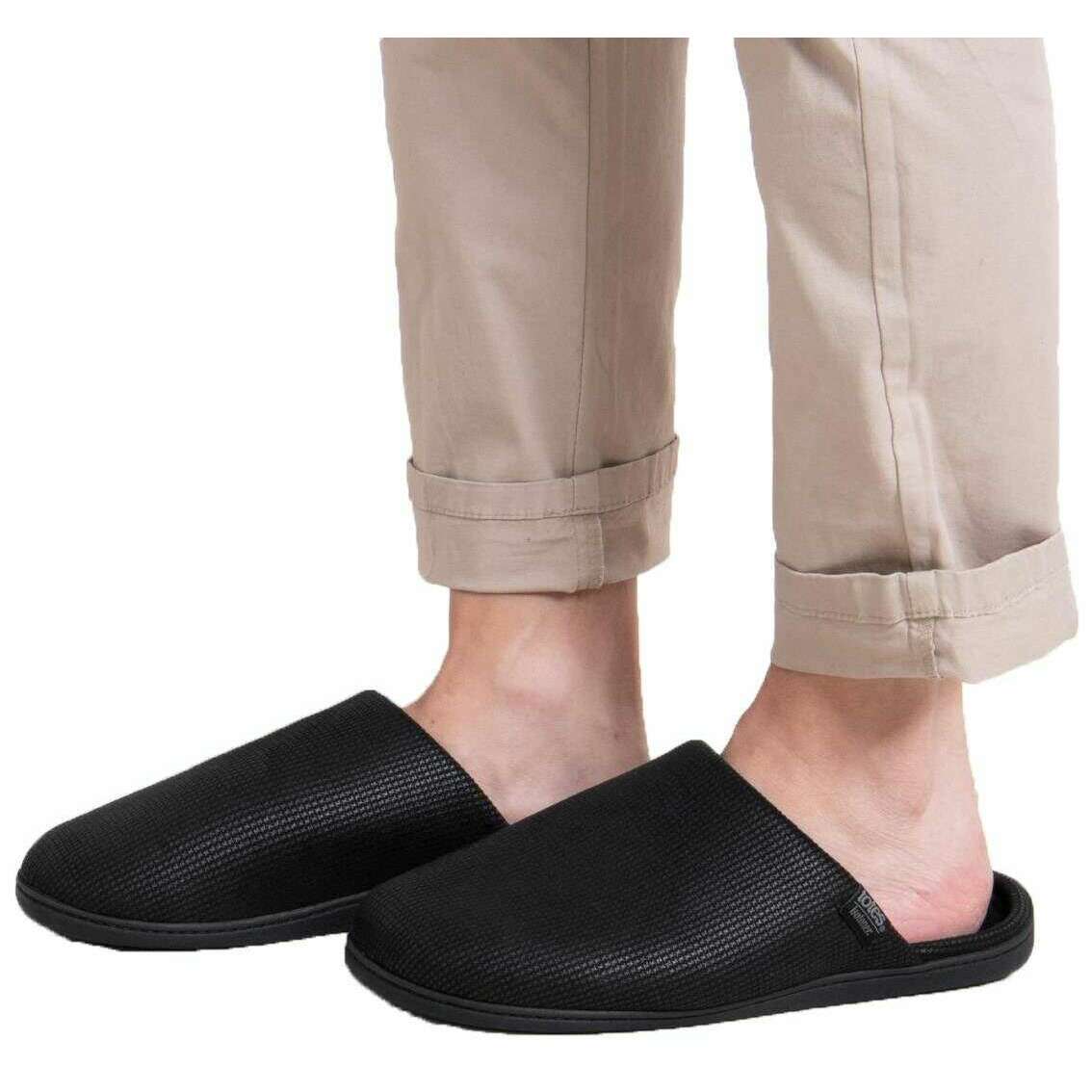 Perfectas para los hombres son estas pantuflas inteligentes con estampado de cuadrados negros de Isotoner, además están hechas de 100% poliéster. Además, las pantuflas negras están diseñadas con un patrón liso. Se recomienda lavar a máquina a 30 grados para mantener estas pantuflas en buenas condiciones. Todas las zapatillas se entregan completas con un embalaje de isotóner. Las pantuflas inteligentes con estampado cuadrado Isotoner - Negro son un par imprescindible para cualquier caballero, ya que ofrecen comodidad, apoyo y calidez excepcionales. Con espuma viscoelástica de confort envolvente 360 ​​y tecnología acolchada tipo almohada con una capa de espuma, se sentirá como si estuviera caminando sobre una nube con el soporte para el talón y el arco y una suela ergo dot duradera que garantiza un uso antideslizante. Este estilo de mula mantendrá tus pies agradables y calentitos con los materiales suaves y la cobertura del pie, a la vez que es transpirable con la espalda abierta.