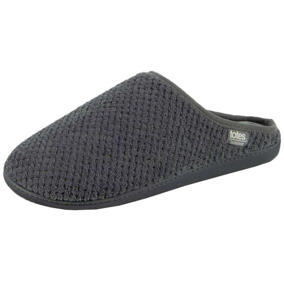 Perfectas para los hombres son estas pantuflas tipo mule con diseño de palomitas de maíz en gris de Isotoner, y también están hechas de 100% poliéster. Además, las pantuflas grises están diseñadas con un patrón liso. Se recomienda lavar a máquina a 30 grados para mantener estas pantuflas en buenas condiciones. Todas las zapatillas se entregan completas con un embalaje de isotóner. Las pantuflas Isotoner Swept Back Popcorn Mule - Gris son un par imprescindible para cualquier caballero, ya que ofrecen comodidad, apoyo y calidez excepcionales. Con cómoda espuma viscoelástica y tecnología acolchada con una capa de espuma, te sentirás como si estuvieras caminando sobre una nube con la duradera suela ergo dot que garantiza un uso antideslizante. Este estilo de mula mantendrá tus pies agradables y calentitos con los materiales suaves y esponjosos y la cobertura del pie, a la vez que es transpirable con la espalda abierta.