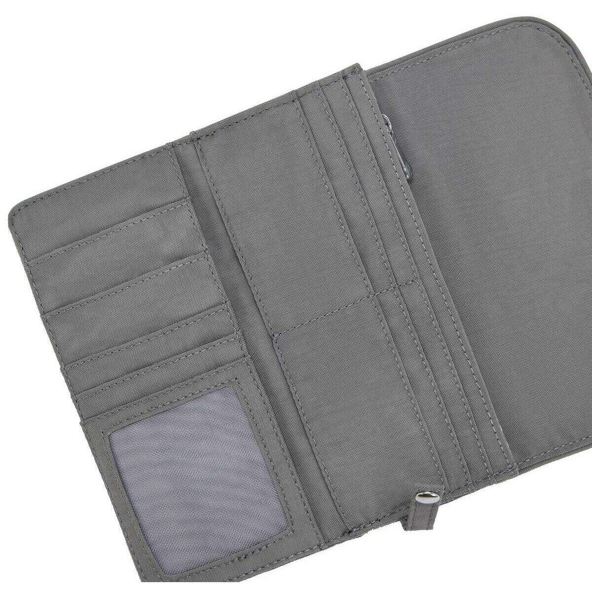• Tecnología RFID , Cierre con botón a presión , Compartimentos para efectivo , Diez ranuras para tarjetas de crédito , Bolsillo interior con cremallera , Ranura para identificación