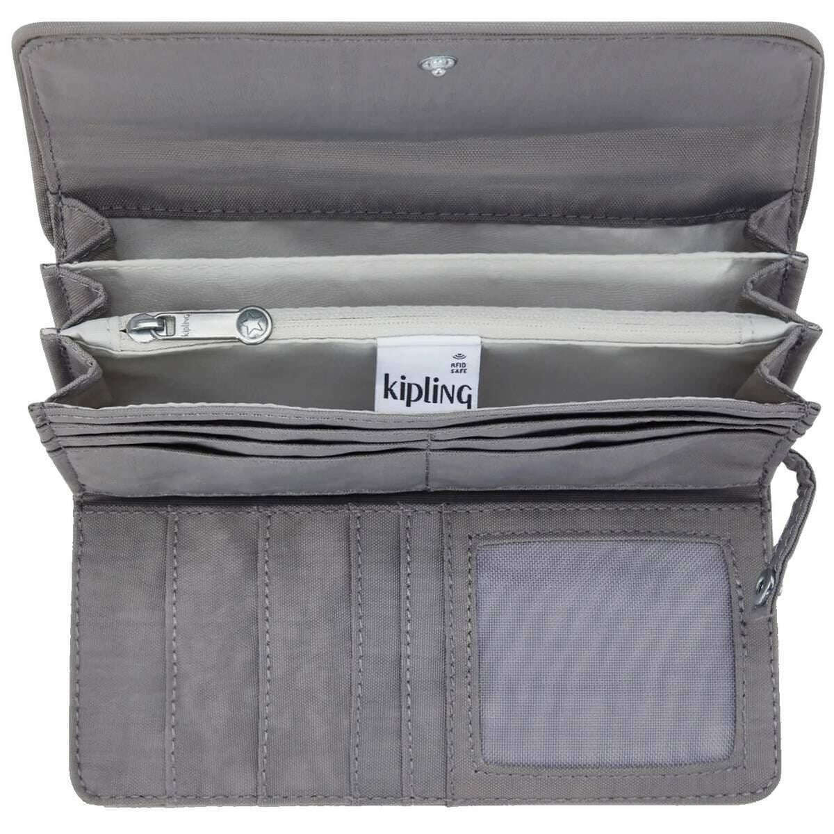 Perfecto para las mujeres es este atractivo monedero gris de Kipling; también está hecho de 60% poliamida y 40% poliamida reciclada. Mide 10 cm (alto) x 18,5 cm (ancho) x 3 cm (profundidad). Todos los bolsos vienen completos con embalaje kipling. El bolso Kipling Money Land - Inviting Grey es un accesorio imprescindible para los adultos vanguardistas. Esta billetera simple pero duradera cuenta con compartimentos para efectivo, diez ranuras para tarjetas de crédito, un bolsillo interior con cremallera y una ranura para identificación para su licencia de conducir o identificación del trabajo. Diseñada para mantener seguros sus elementos esenciales con un cierre de botón a presión, esta billetera es perfecta para viajeros y cualquier persona que esté siempre en movimiento. La tecnología RFID evita que los piratas informáticos roben datos de forma inalámbrica mediante la creación de un escudo virtual para proteger sus tarjetas con chip.