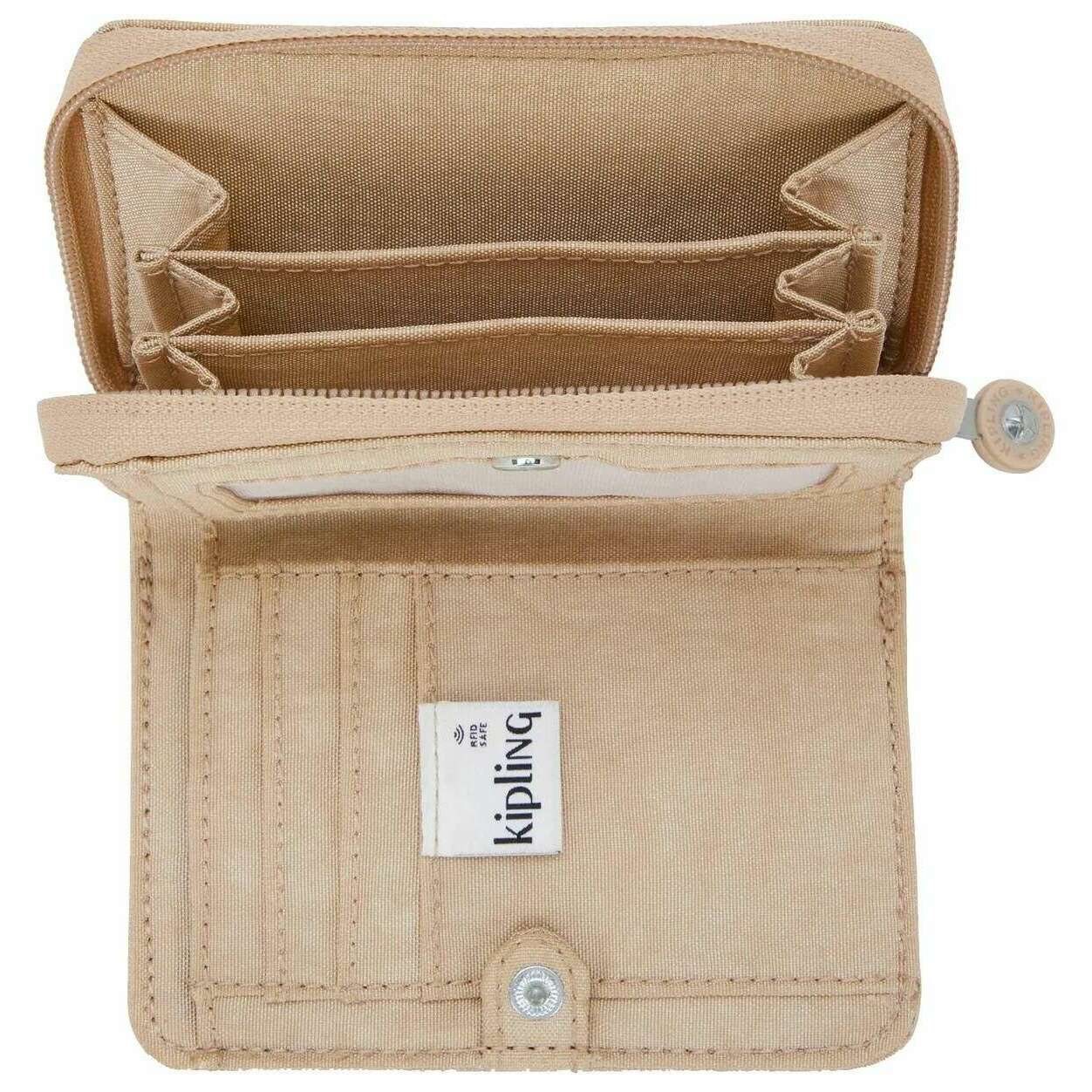 Este bolso money love para mujer de la marca Kipling está hecho de 60% poliamida y 40% poliamida reciclada y se presenta en color beige. Mide 12,5 cm (alto) x 9,5 cm (ancho) x 2,5 cm (profundidad). Todos los bolsos vienen completos con embalaje kipling. ¡El bolso Kipling Money Love - Sparkled Beige tiene bolsillos innovadores y un cierre de cremallera fácil para un diseño simple pero clásico! Esta billetera incluye protección RFID, que ayuda a proteger contra el robo inalámbrico de datos de tarjetas de crédito. Ideal para llevar dinero en efectivo, tarjetas y documentos de identidad, esta billetera es compacta pero organizada y ofrece un buen equilibrio entre capacidad y portabilidad, adecuada para quienes no les gustan las billeteras voluminosas.