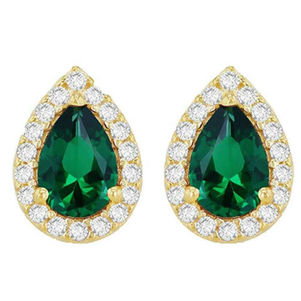 Arete con halo en forma de pera de KJ Beckett - Oro amarillo/verde