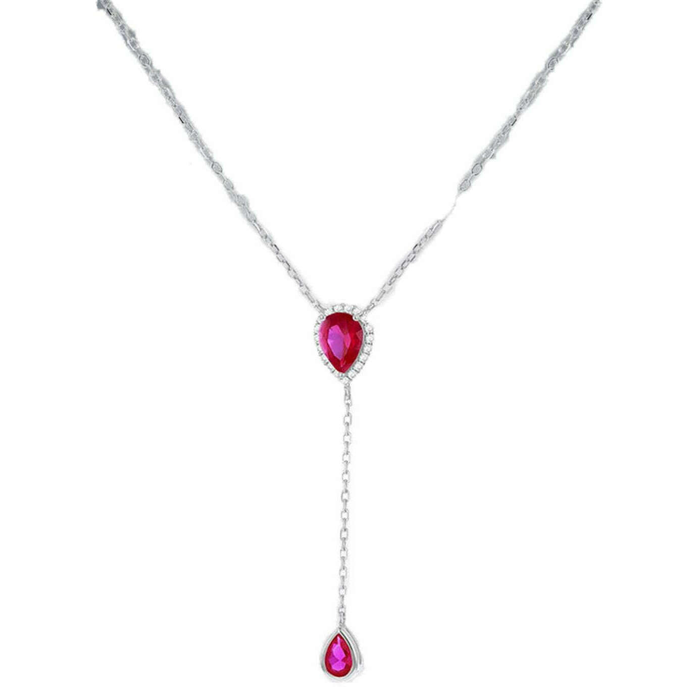 Collar con lazo ajustable en forma de lágrima de KJ Beckett - Plata/Rojo