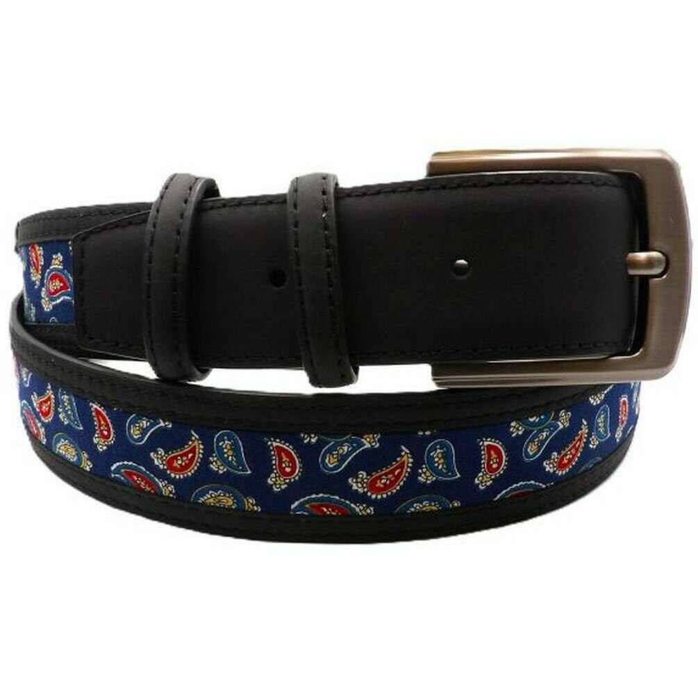 Knightsbridge Neckwear Cinturón Mayfair De Piel De Paisley - Negro
