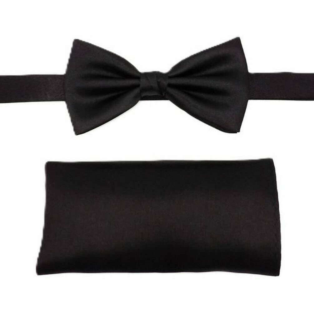 Knightsbridge Neckwear Conjunto de pajarita y pañuelo de bolsillo de satén - Negro