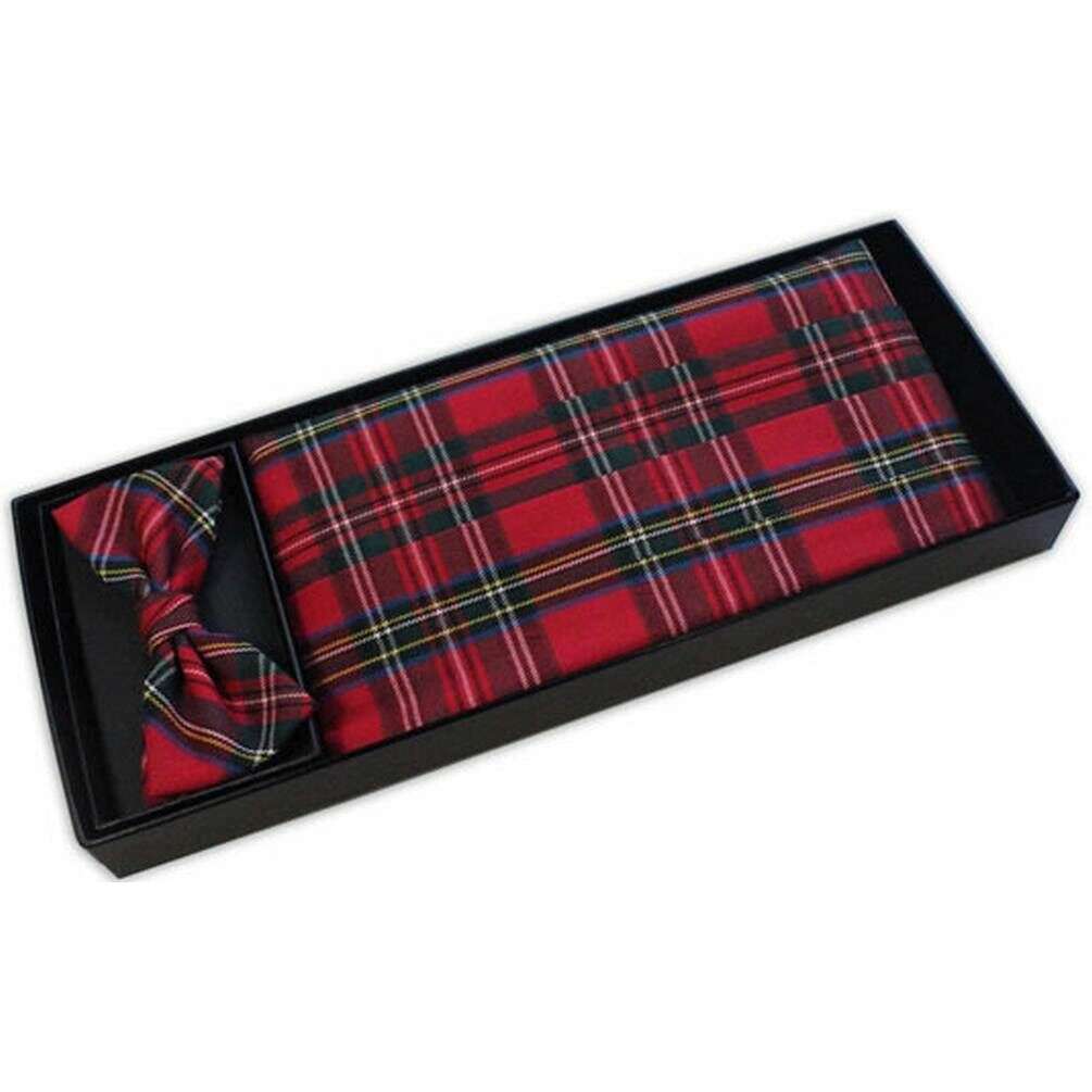 Knightsbridge Neckwear Conjunto de fajín y pajarita de tartán - Rojo