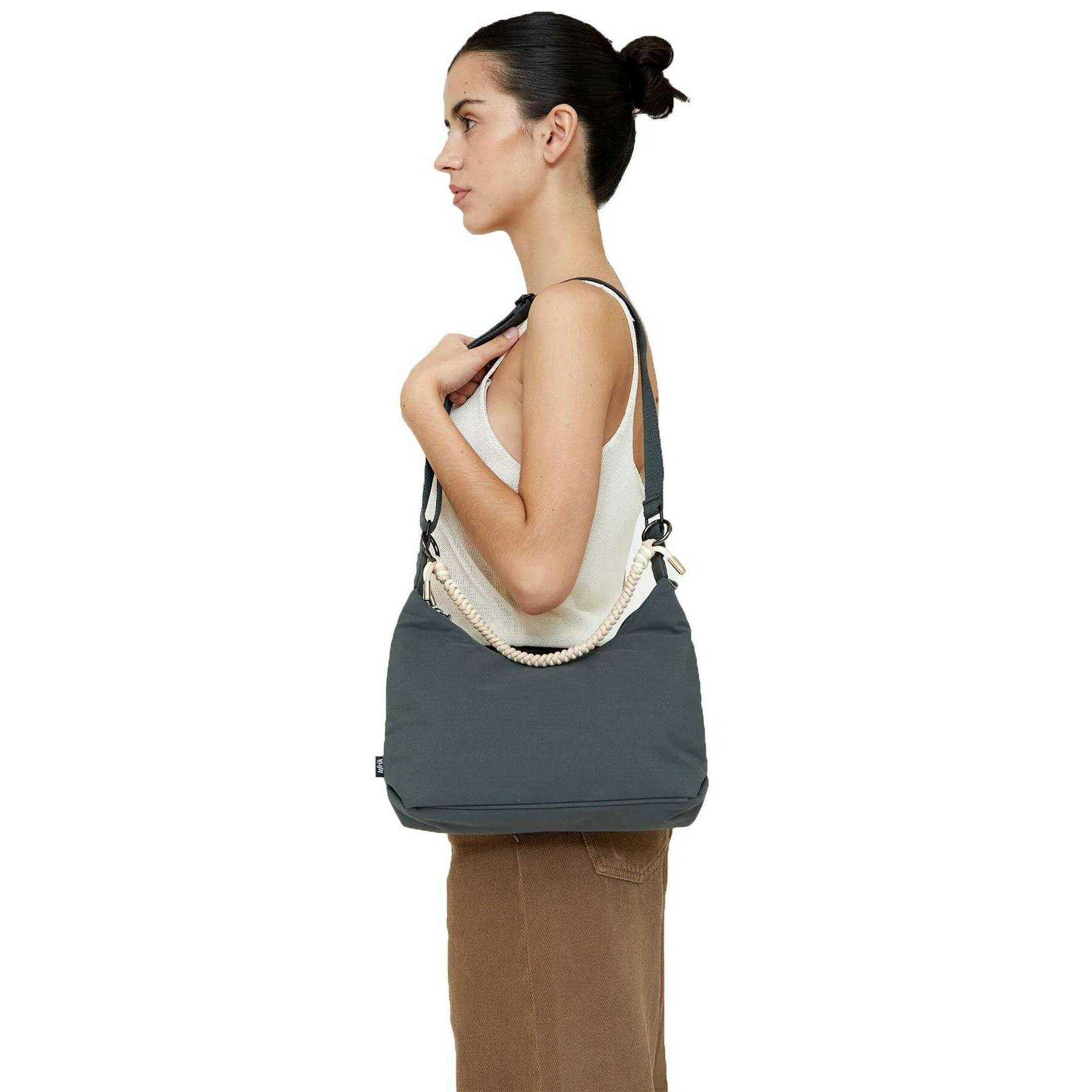 • Aprobado para veganos , Cordón trenzado , Correa ajustable para el hombro , Fácil cierre de cremallera , Un bolsillo interno con cremallera , Capacidad: 3,8 L