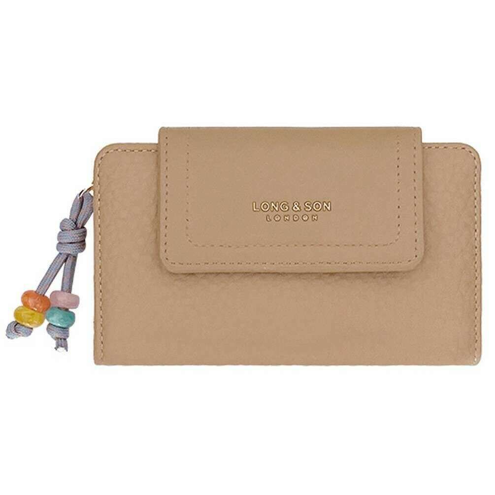 Utilizando 100 % poliuretano de color beige, este bolso con solapa superior de Long and Son es perfecto para las mujeres y es imprescindible. Mide 10 cm (alto) x 15,3 cm (ancho). Todos los bolsos vienen completos con embalaje long & son. El bolso con solapa superior Long and Son - Khaki Beige ofrece un excelente espacio de almacenamiento con mucho espacio para todas sus formas de ganar dinero. Con un compartimento con cremallera de dos secciones y un bolsillo con cremallera para monedas sueltas, una sección magnética que tiene seis tarjeteros y dos ventanas de identificación, dos bolsillos para recibos y una sección para billetes. ¡Qué más se puede pedir! Este magnífico diseño es elegante y sofisticado con un dulce encanto que le da un toque de color adicional. Completo con la sutil marca Long & Son.