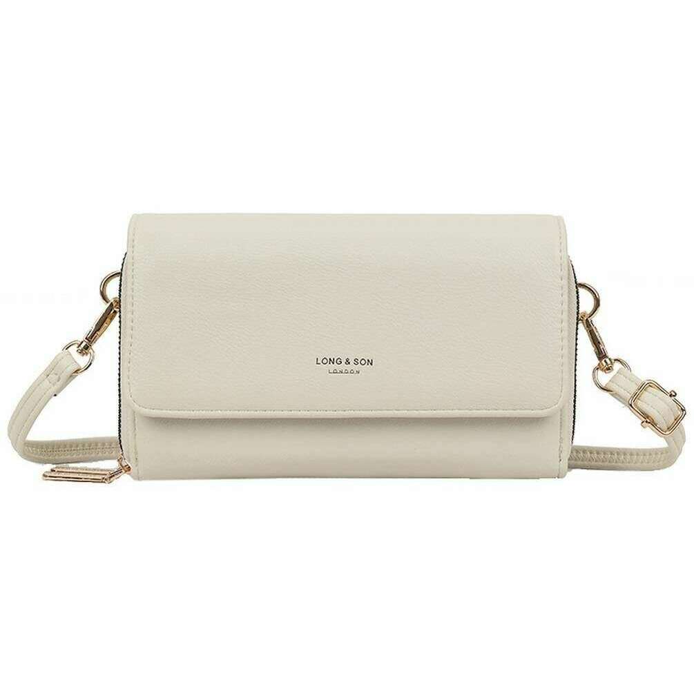 Presentado por la marca Long and Son, este bolso bandolera para mujer en color blanco roto está hecho de 100 % poliuretano. Mide 12,5 cm (alto) x 20 cm (ancho) x 5 cm (profundidad). Todas las bolsas vienen completas con embalaje long & son. El bolso bandolera Long and Son Purse - Off White es imprescindible si lo llevas ligero. Con múltiples secciones para tus pertenencias más pequeñas, seis tarjeteros y un compartimento para billetes para la comodidad de no tener que llevar un bolso. El estilo pequeño y compacto es ideal para un uso liviano, y la correa ajustable desmontable permite llevarlo cruzado o al hombro y al mismo tiempo servir como bolso de mano. Completo con la sutil marca Long & Son.