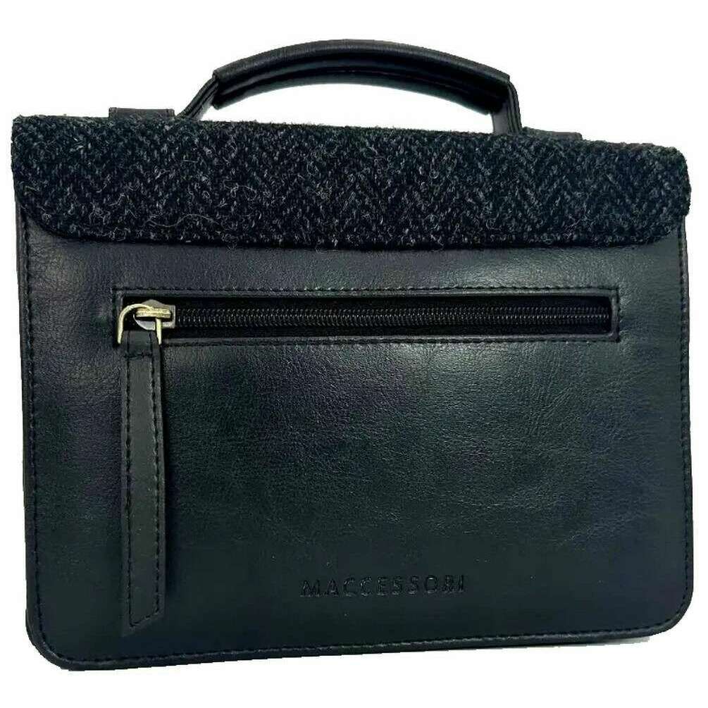 Este mini bolso bandolera unisex harris tweed ha sido confeccionado en harris tweed y cuero vegano, se presenta en color negro y es de la marca Maccessori. Mide 16 cm (alto) x 22 cm (ancho) x 10 cm (profundidad). Se recomienda limpiar con un paño para mantener esta bolsa en buenas condiciones. Todas las bolsas se entregan completas en embalaje maccessori. El mini bolso mensajero Maccessori Harris Tweed - Gris carbón presenta un estilo maravillosamente clásico con un asa superior y una correa para el hombro desmontable. Su resistente marco le permite mantener su forma y el cierre magnético asegura sus pertenencias en el interior. Tiene el tamaño perfecto para el día a día con una sección principal, un bolsillo con cremallera en la parte trasera y un bolsillo abierto en la parte delantera, debajo de la solapa. Lo buscarás en cada oportunidad y lucirás fabuloso al usarlo.