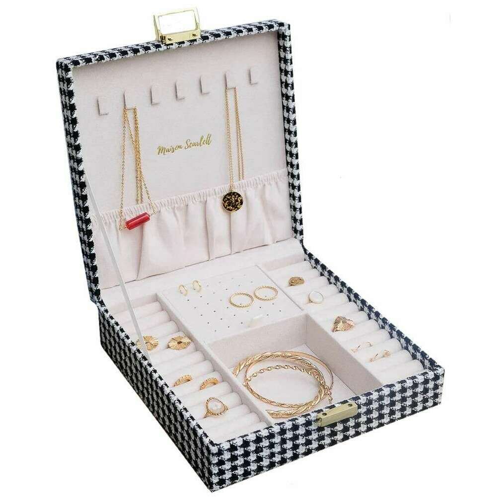 Maison Scarlett Anne Houndstooth Jewelery Box - Negro