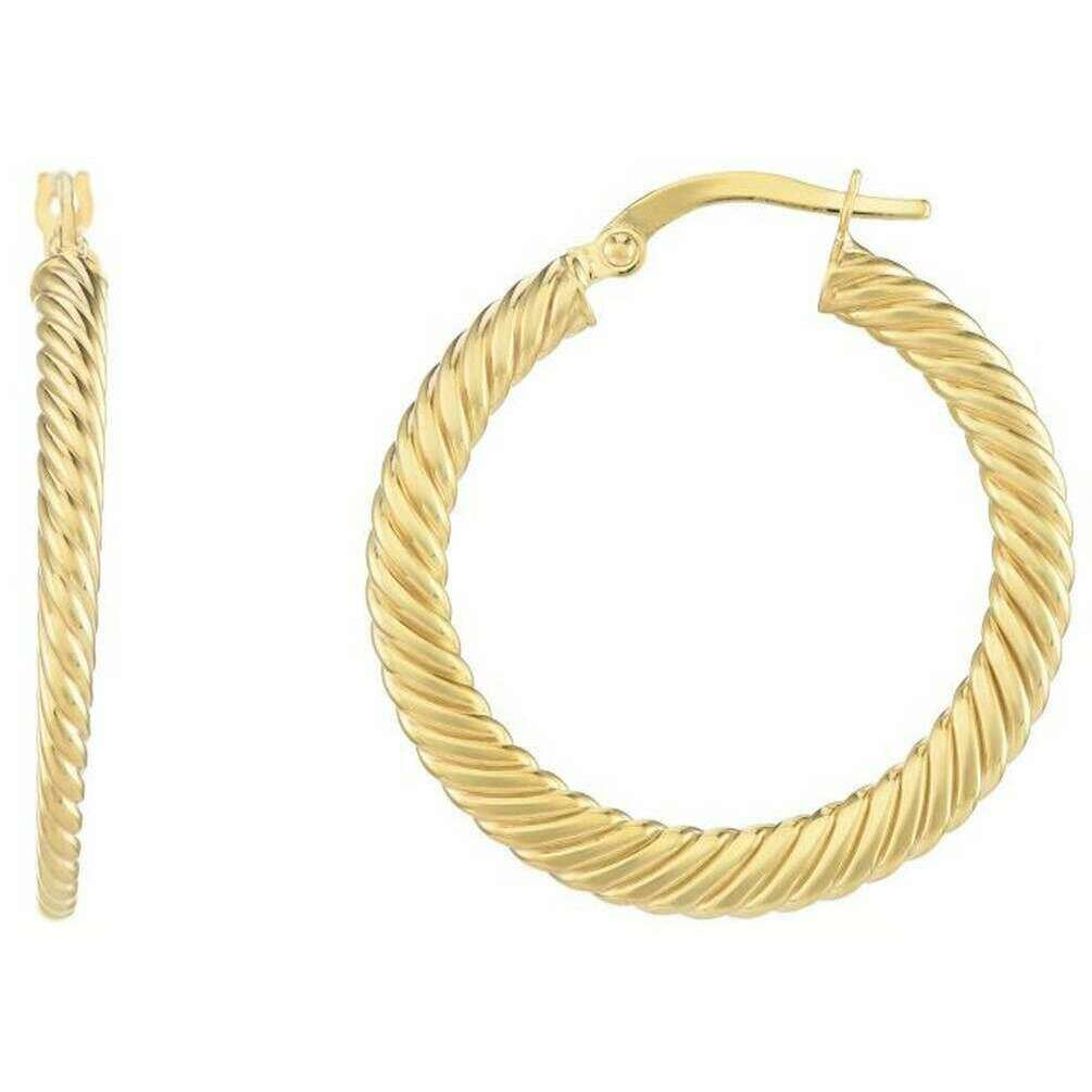 Estos pendientes de aro finos para mujer están diseñados por la marca Mark Milton en color dorado y están hechos de oro de 9 quilates. Mide 2,6 cm (alto) x 0,2 cm (ancho) x 0,4 cm (profundidad). Todos los pendientes vienen completos con un embalaje de Mark Milton. Los aretes de aro con torsión fina de Mark Milton - Oro amarillo son imprescindibles para agregar a su rotación de aretes con su exclusivo diseño giratorio con textura dorada. Perfecto para combinar con tu estilo sea cual sea la ocasión. ¡Estos son el regalo perfecto para ti o para otra persona!