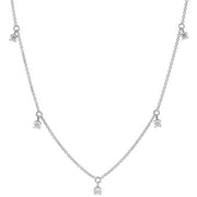 Este collar de diamantes de cinco gotas para mujer de la marca Mark Milton está hecho de oro de 9 quilates y se presenta en plata. Mide 45 cm (largo). Todos los collares vienen completos con el embalaje de Mark Milton. El collar de cinco gotas de diamantes Mark Milton - Oro blanco presenta cinco diamantes de talla redonda en una cadena de plata. Este collar es delicado y tiene un diseño llamativo, perfecto para el uso diario o para agregar un toque elegante e informal a su atuendo de noche.