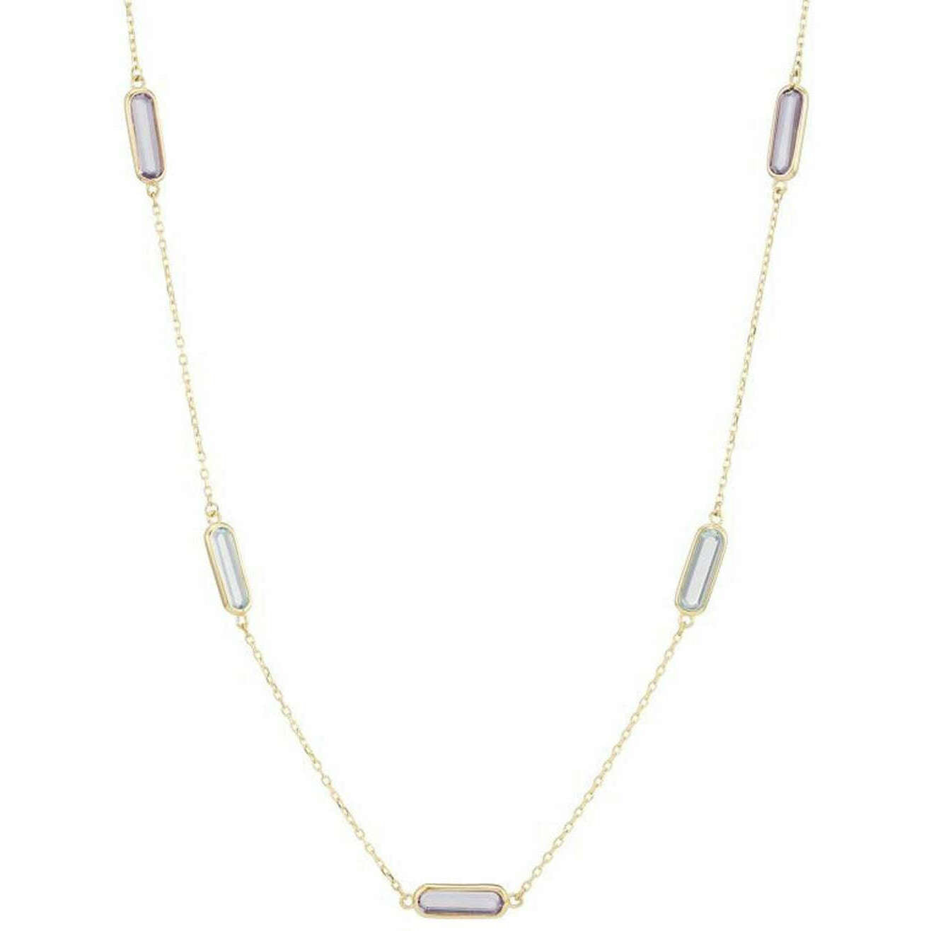 Perfecto para las mujeres es este collar de topacio y amatista en forma de rombo azul/oro amarillo de Mark Milton; también está hecho de oro de 9 quilates. Mide 46 cm (largo). Todos los collares vienen completos con el embalaje de Mark Milton. El collar Mark Milton Lozenge de amatista y topacio - Oro amarillo/azul presenta piedras preciosas de amatista y topacio en una cadena de oro. Este collar es delicado y tiene un diseño llamativo, perfecto para el uso diario o perfecto para una ocasión especial.
