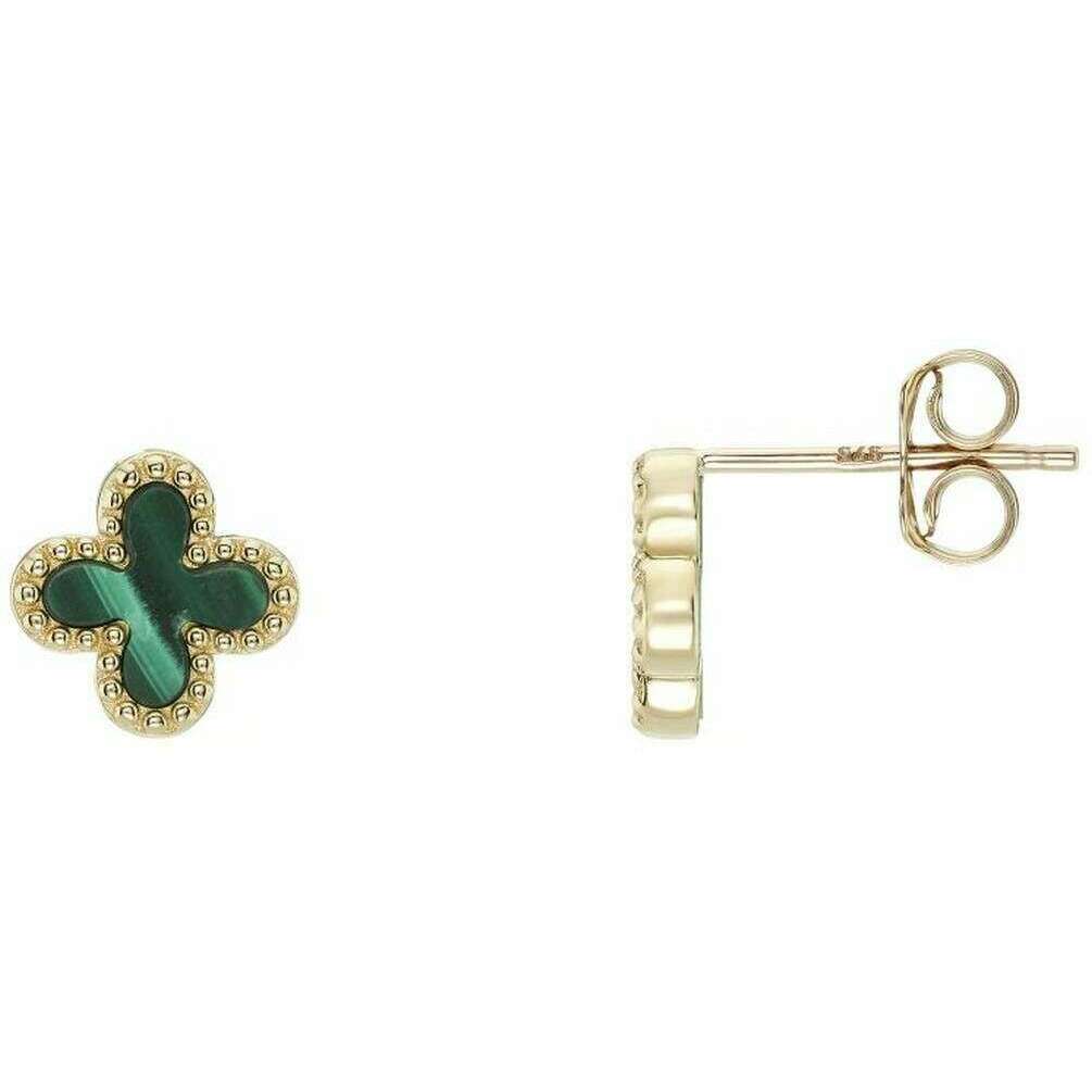 Presentamos estos aretes con forma de flor de malaquita para mujer de Mark Milton. Están fabricados en oro de 9 quilates en color oro amarillo/verde. Mide 0,9 cm (alto) x 0,9 cm (ancho) x 0,2 cm (profundidad). Todos los pendientes vienen completos con un embalaje de Mark Milton. Los aretes con flor de malaquita de Mark Milton - Oro amarillo/verde son un hermoso par de aretes de oro que presentan un diseño de flor de piedra de malaquita. Este par de elegantes aretes son ideales para regalar a sus seres queridos o como un elemento básico perfecto para tener en su guardarropa.