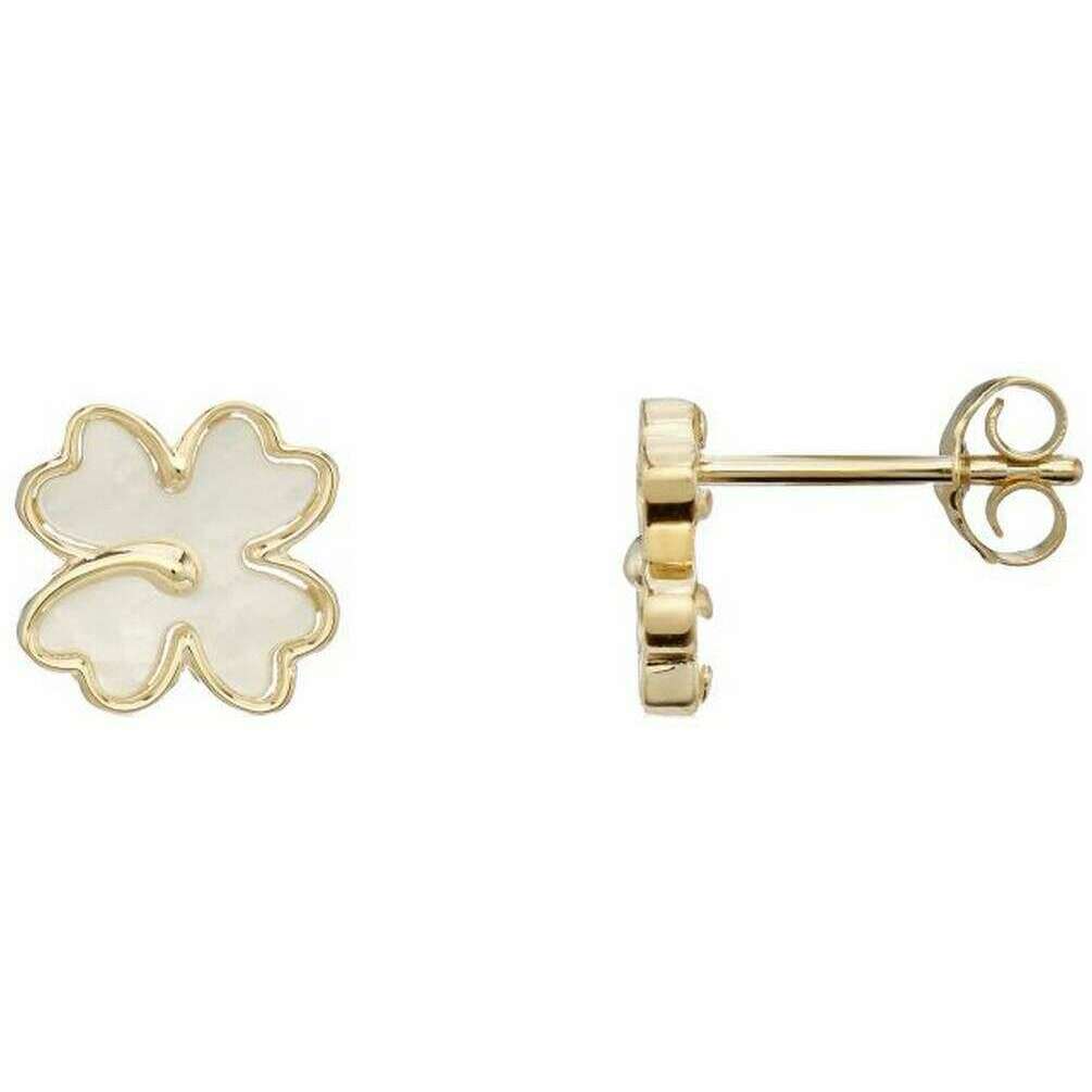 Mark Milton Pendientes con forma de trébol de cuatro hojas de nácar - Oro amarillo/blanco