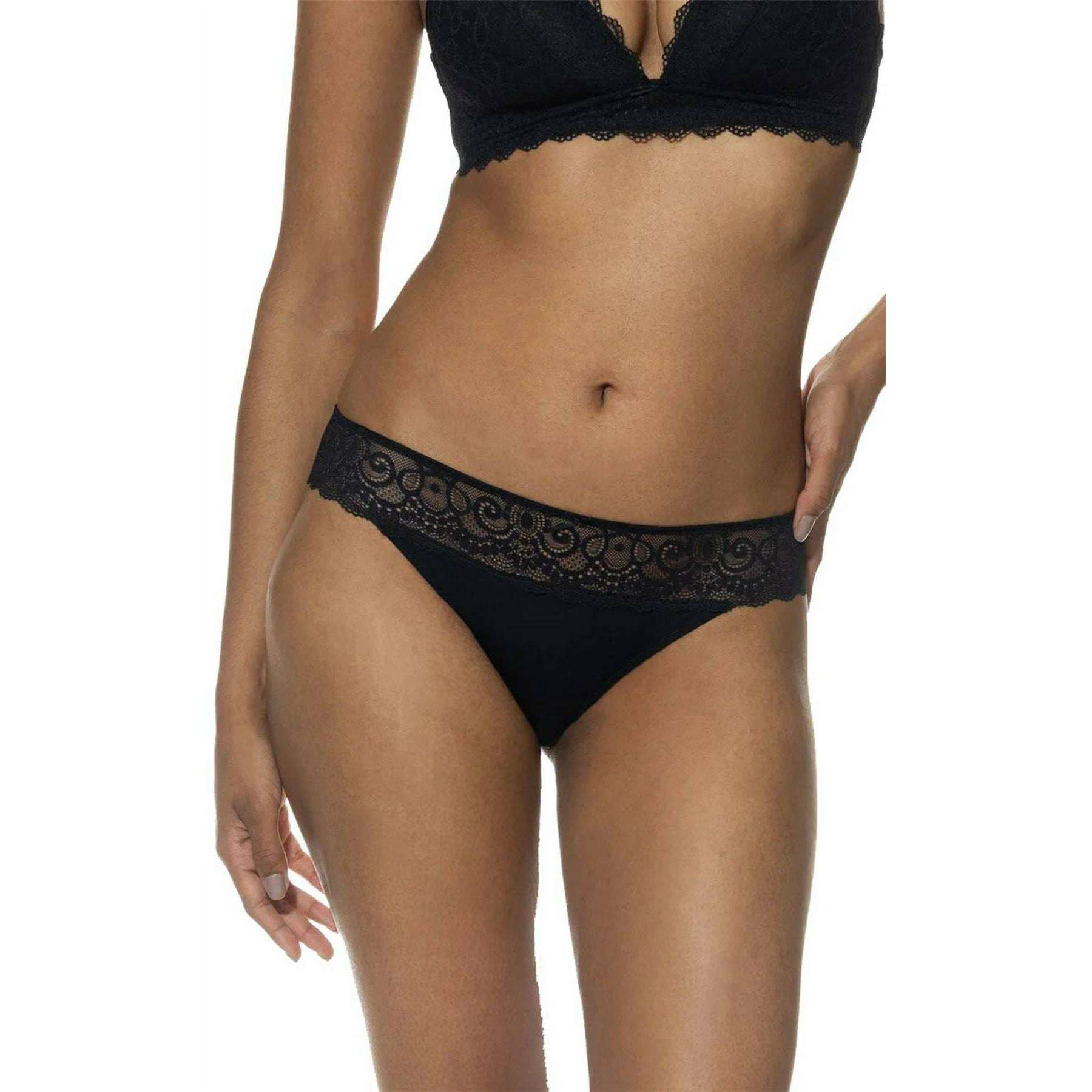 Esta mini braguita amorosa de mujer ha sido confeccionada en 87% poliamida y 13% elastán, se presenta en color negro y es de la marca Mey. Además, la ropa interior negra está diseñada con un patrón liso. Se recomienda lavar suavemente a 30 grados, no planchar a temperatura muy alta, no secar en secadora, no usar lejía para mantener esta ropa interior en buenas condiciones. Toda la ropa interior viene completa en mi propio embalaje. El mini calzoncillo Mey Amorous - Negro presenta un ajuste profundo de talle medio con aberturas suaves para las piernas y una cintura plana diseñada para permitir una comodidad óptima durante todo su uso. Han sido decorados con delicados encajes para darles un toque elegante y femenino, perfecto para asegurar una confianza sexy. Añádelos a tu colección y los alcanzarás todas las mañanas.