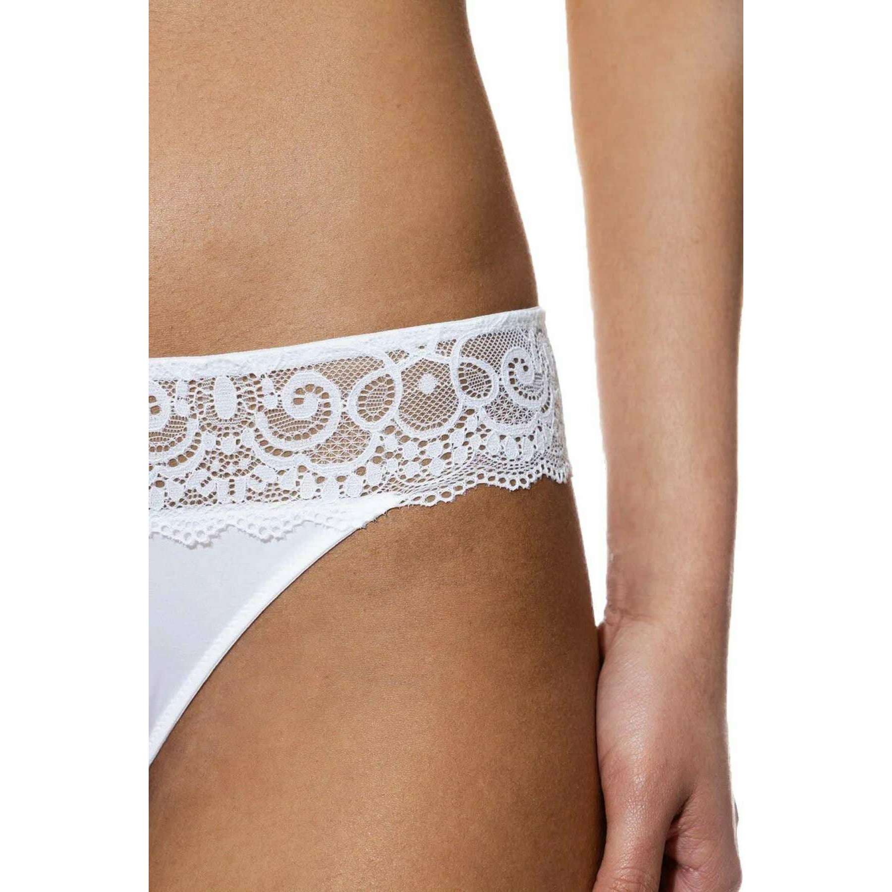 Perfecta para mujer es esta mini braguita amorosa blanca de Mey, además está confeccionada en 87% poliamida y 13% elastano. Además, la ropa interior blanca está diseñada con un patrón liso. Se recomienda lavar suavemente a 30 grados, no planchar a temperatura muy alta, no secar en secadora, no usar lejía para mantener esta ropa interior en buenas condiciones. Toda la ropa interior viene completa en mi propio embalaje. El mini calzoncillo Mey Amorous - Blanco presenta un ajuste profundo de talle medio con aberturas suaves para las piernas y una cintura plana diseñada para permitir una comodidad óptima durante todo su uso. Han sido decorados con delicados encajes para darles un toque elegante y femenino, perfecto para asegurar una confianza sexy. Añádelos a tu colección y los alcanzarás todas las mañanas.