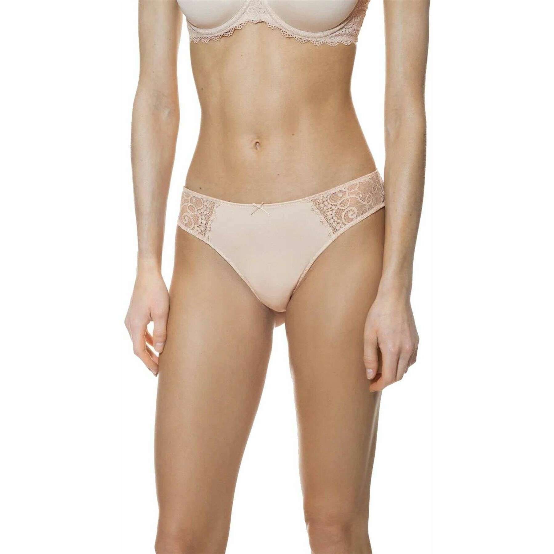 • Cintura plana, detalles de encaje, inserto de algodón en el escudo