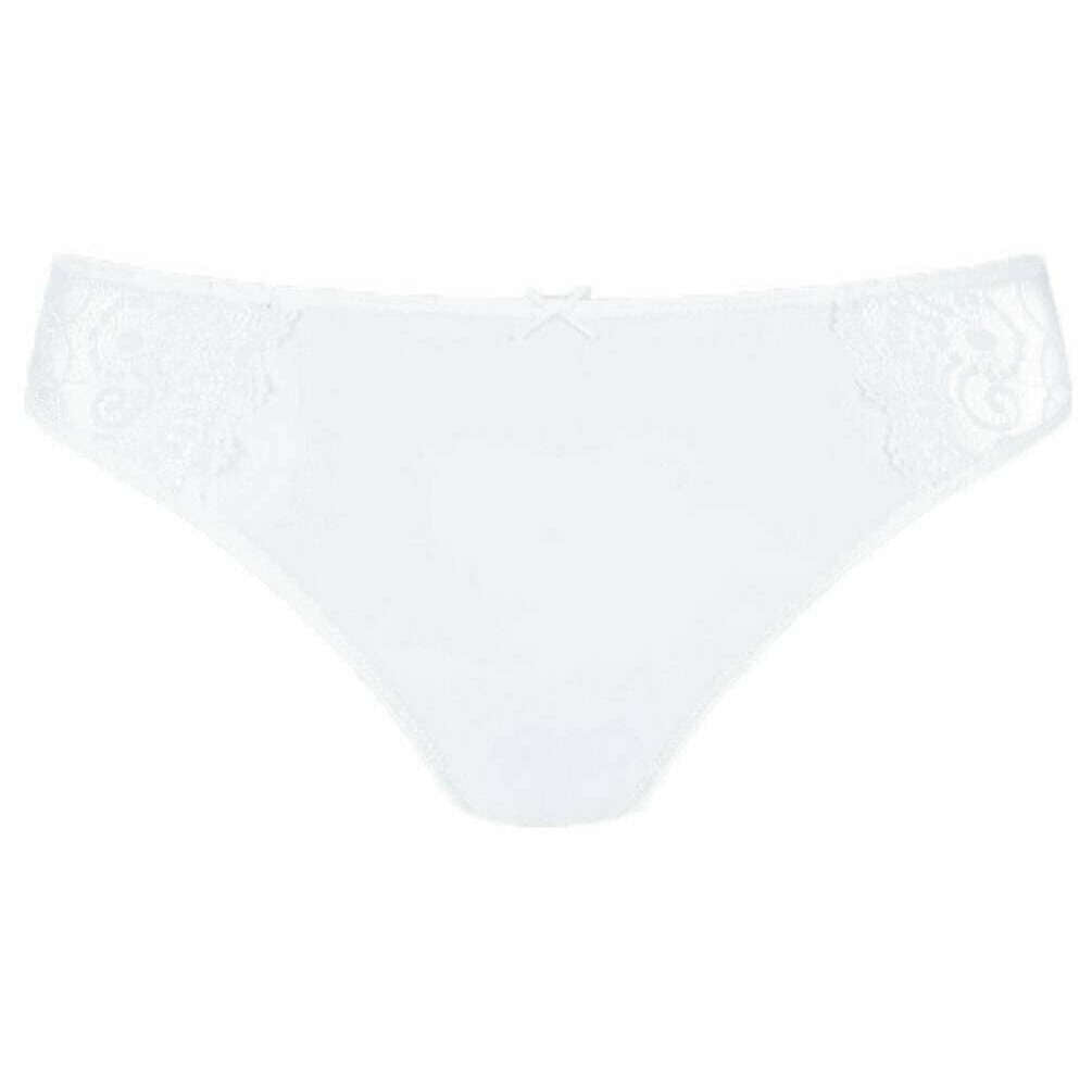 • Cintura plana, detalles de encaje, inserto de algodón en el escudo