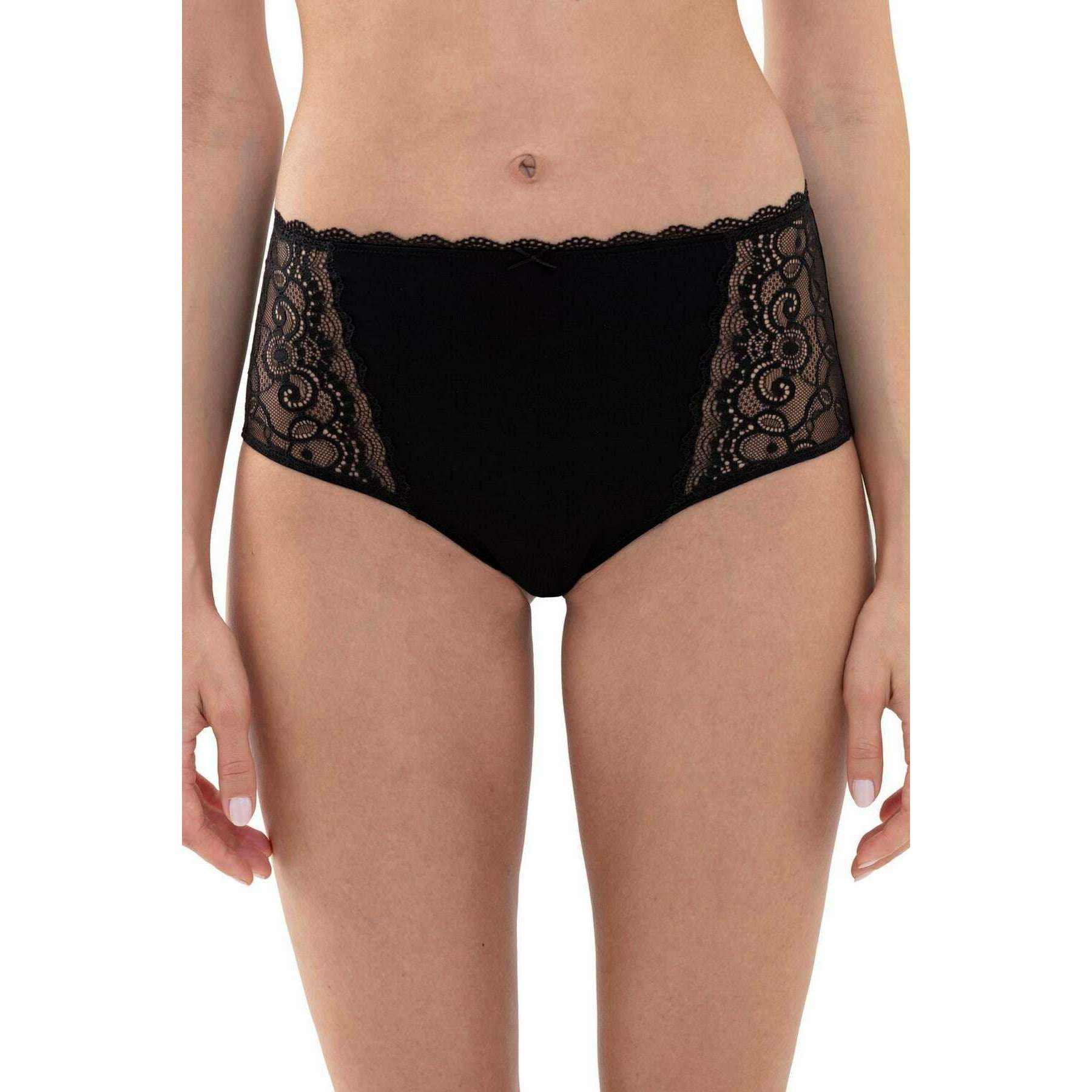 Con un 87% de poliamida y un 13% de elastano de color negro, este amoroso pantalón de cintura de Mey es perfecto para las mujeres y es imprescindible. Además, la ropa interior negra está diseñada con un patrón liso. Se recomienda lavar a máquina a 30 grados para mantener esta ropa interior en buenas condiciones. Toda la ropa interior viene completa con mi embalaje. Los pantalones de cintura Amorous de Mey - Negro son imprescindibles si buscas un básico con un toque precioso para una sensación femenina. Este par tiene un corte de cintura alta, un inserto de algodón en el refuerzo, perneras sin costuras y una cinturilla plana que contribuyen a brindar una comodidad óptima para el uso diario. Los laterales de encaje le dan un toque elegante y sexy.