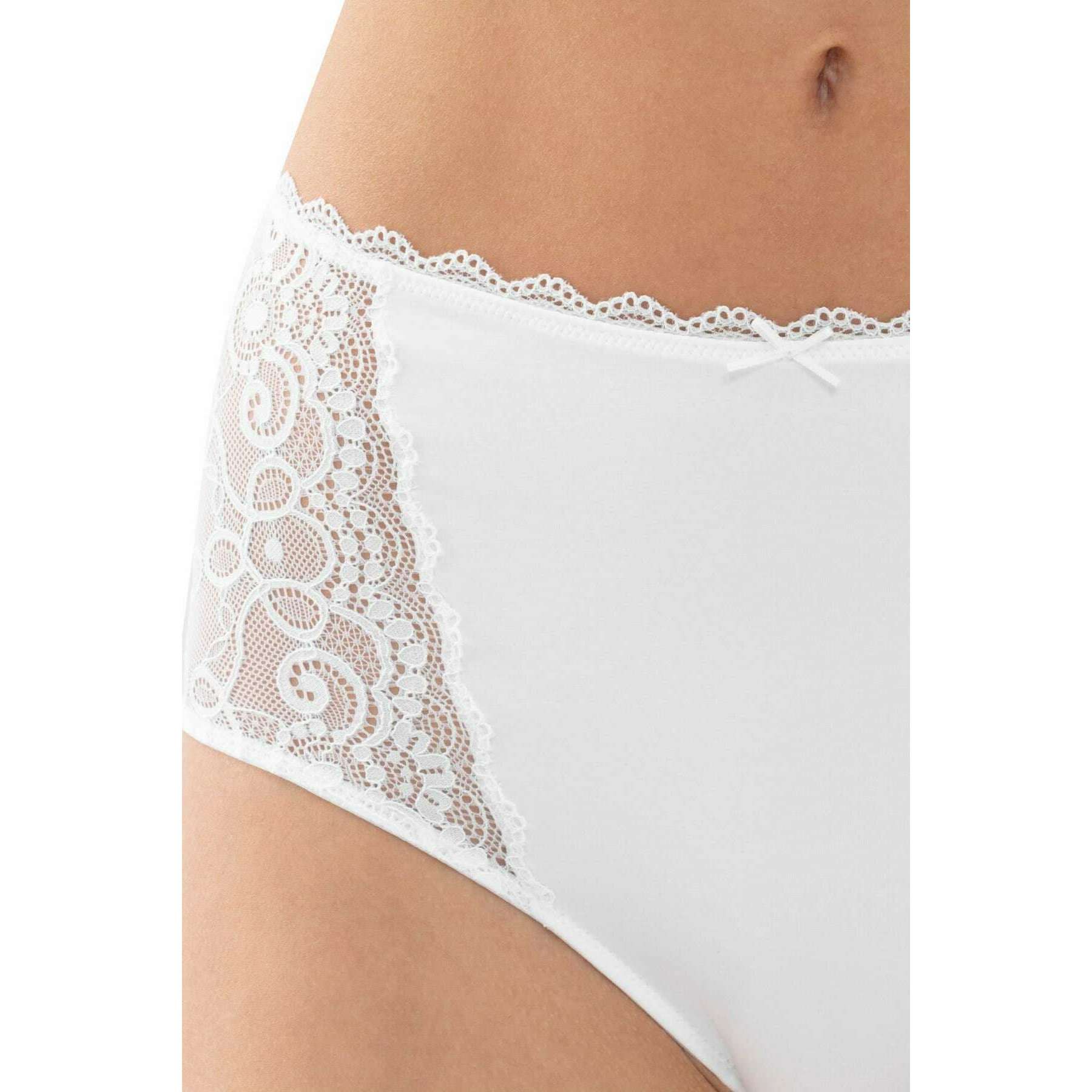 Este pantalón de cintura amorosa para mujer ha sido confeccionado en 87% poliamida y 13% elastano, se presenta en color blanco y es de la marca Mey. Además, la ropa interior blanca está diseñada con un patrón liso. Se recomienda lavar a máquina a 30 grados para mantener esta ropa interior en buenas condiciones. Toda la ropa interior viene completa con mi embalaje. Los pantalones de cintura Amorous de Mey - Blanco son imprescindibles si buscas un básico con un toque precioso para una sensación femenina. Este par tiene un corte de cintura alta, un inserto de algodón en el refuerzo, perneras sin costuras y una cinturilla plana que contribuyen a brindar una comodidad óptima para el uso diario. Los laterales de encaje le dan un toque elegante y sexy.