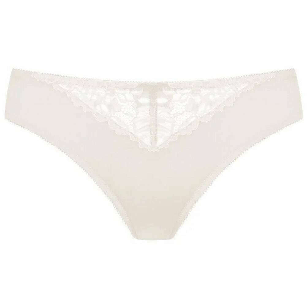 Presentamos esta lujosa minibraguita para mujer de Mey, fabricada con 87% poliamida y 13% elastano en color crema champán. Además, la ropa interior color crema champán está diseñada con un patrón liso. Se recomienda lavar a máquina a 30 grados para mantener esta ropa interior en buenas condiciones. Toda la ropa interior viene completa con mi embalaje. La Braguita Mini Lujosa Mey - Crema Champán es un imprescindible si buscas un básico con un toque precioso para una sensación femenina. Este par tiene un corte de talle bajo, un inserto de algodón en el refuerzo, perneras sin costuras y una cinturilla plana que contribuyen a brindar una comodidad óptima para el uso diario. El frente de encaje le da un toque elegante y sexy.