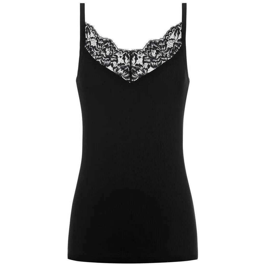 Mey Top Spaghetti De Encaje De Algodón Orgánico - Negro