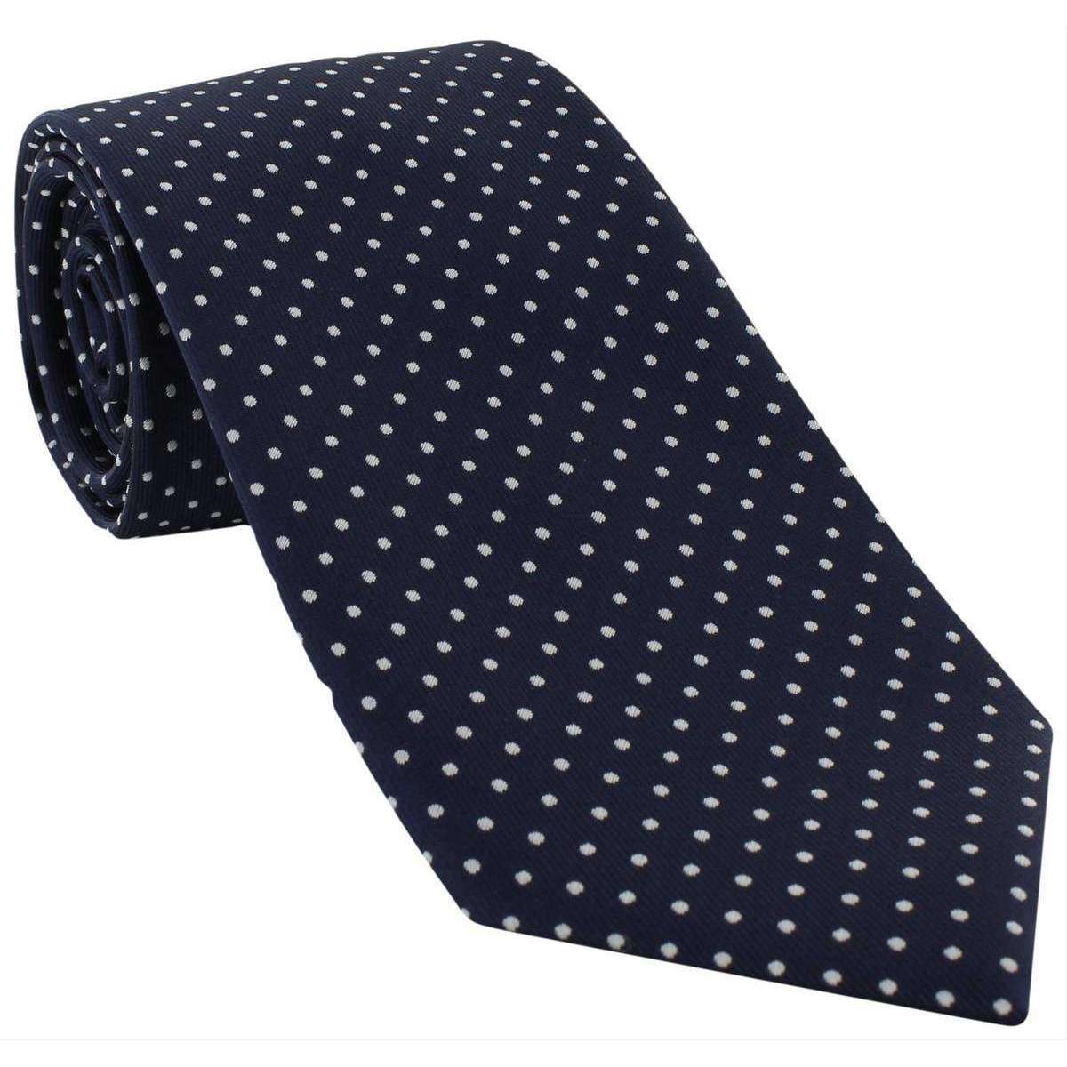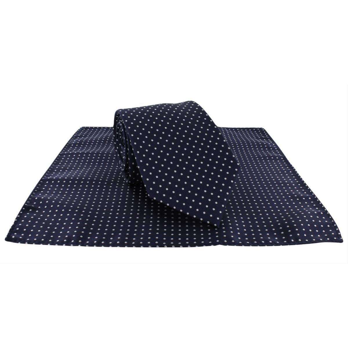Michelsons of London Spot Polyester Tie and Pocket Square - Navy/White