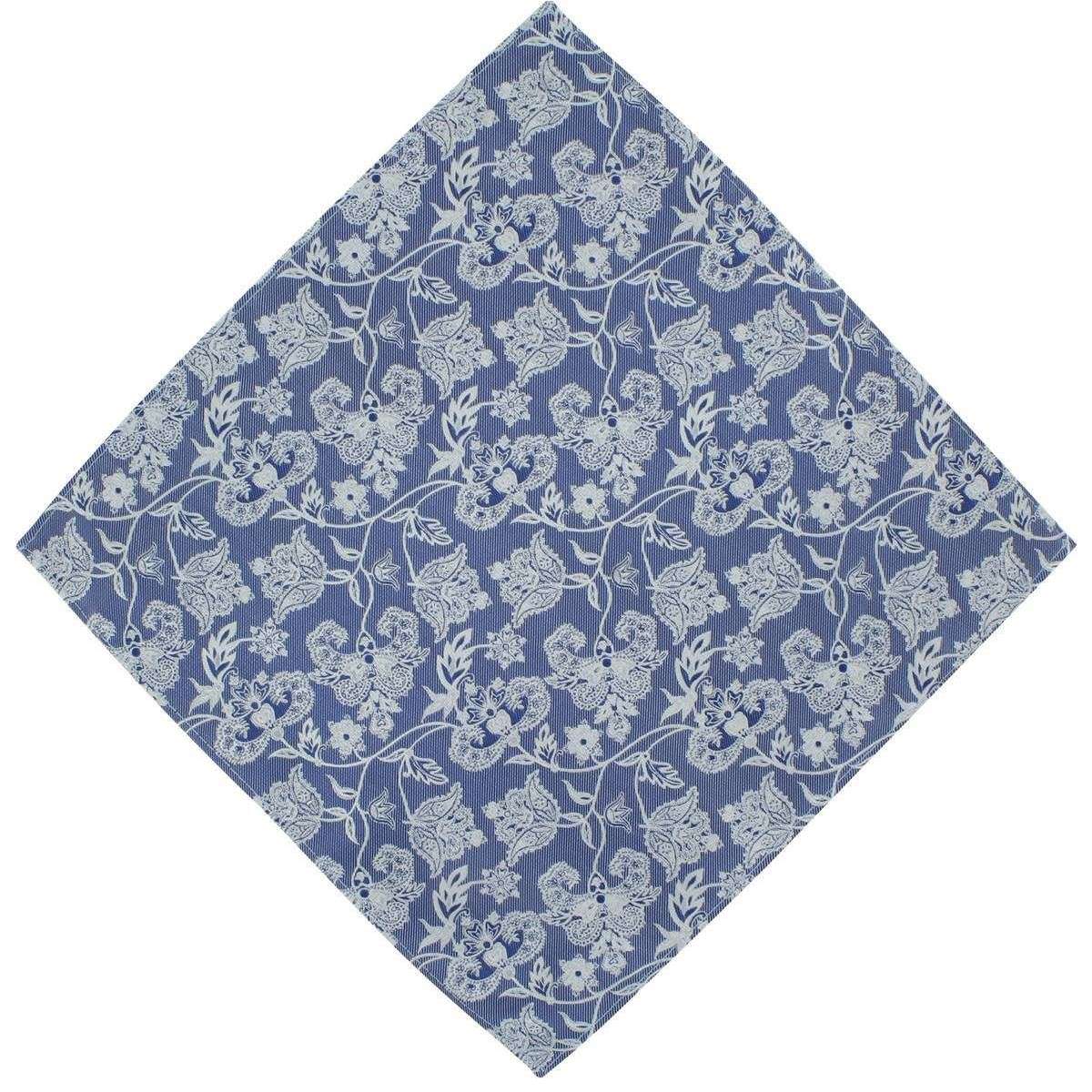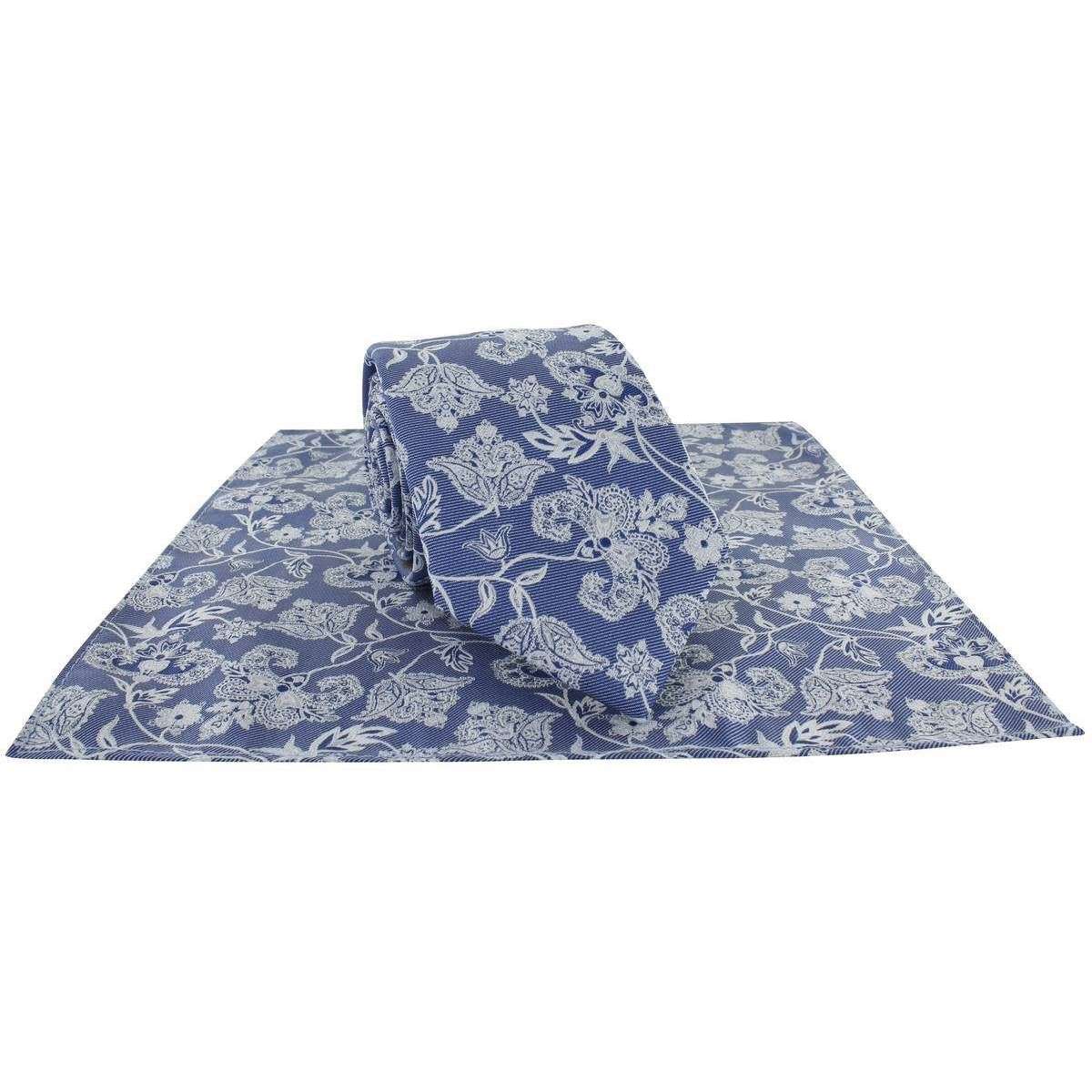 Michelsons de London Explawling Floral Polyester Tie and Pocket Square Set - Azul