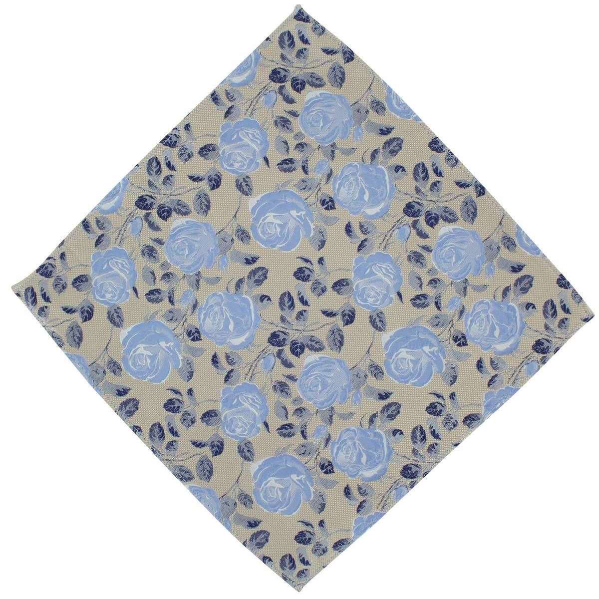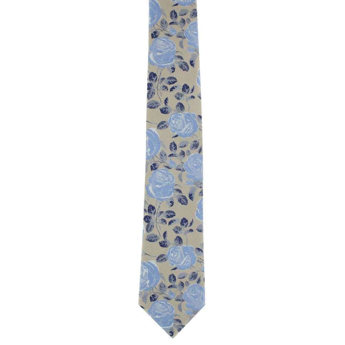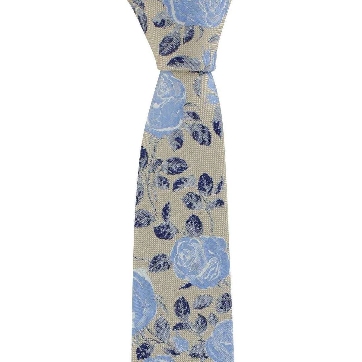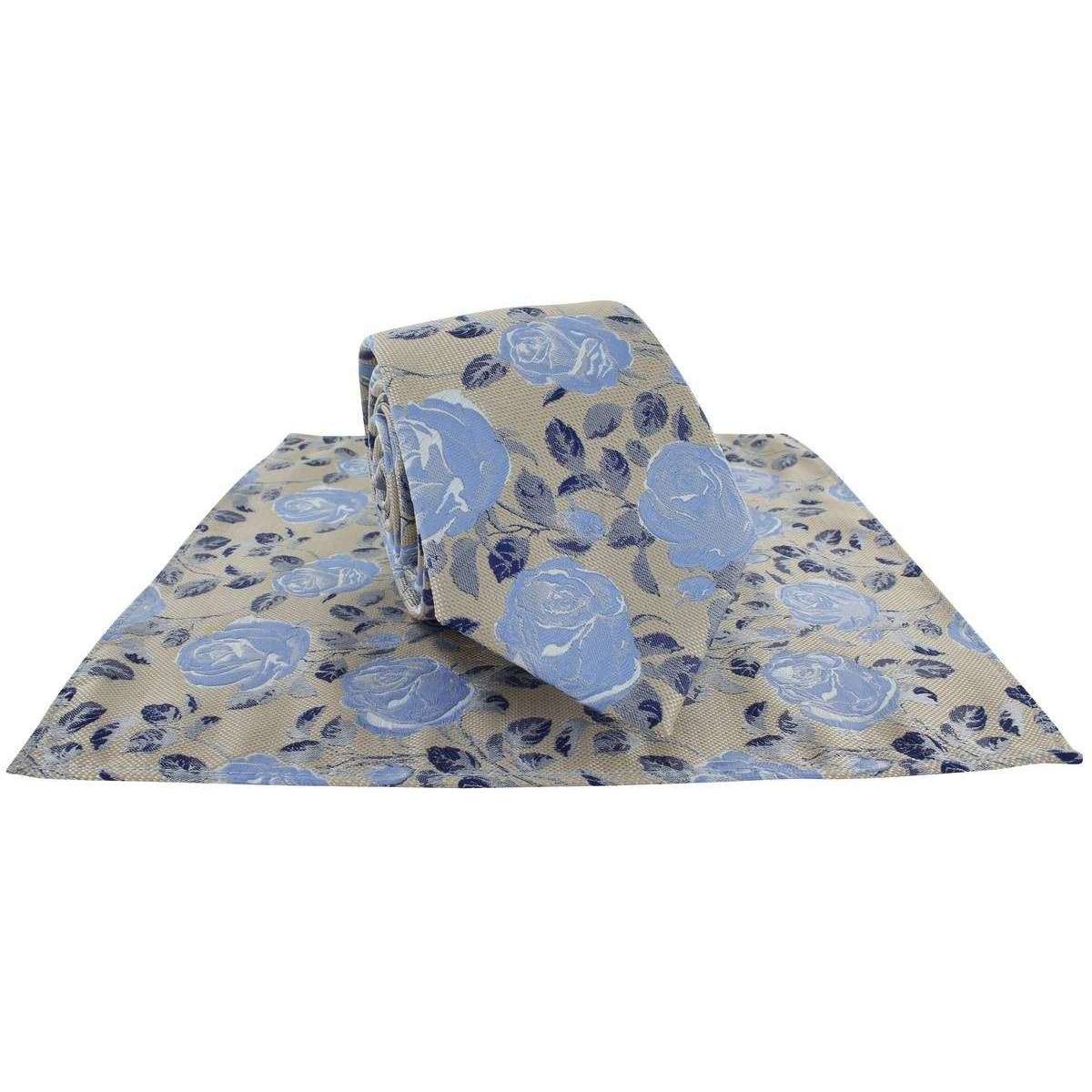 Michelsons of London texturized Rose Floral Polyester Tie and Pocket Square Set - Taupe/Blue