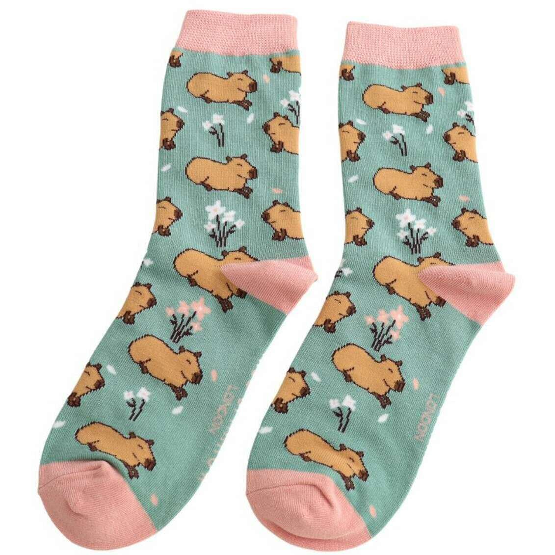 Calcetines de bambú con bonito carpincho de Miss Sparrow London - Verde