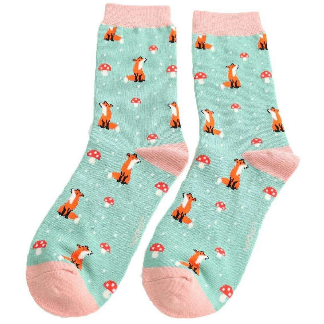 Miss Sparrow London Calcetines de Bambú Zorro y Toadstool - Verde
