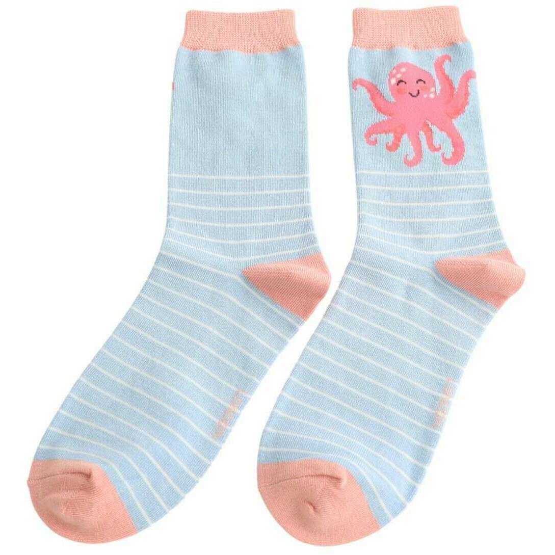 Calcetines de bambú Pink Octopus de Miss Sparrow London - Azul Polvo