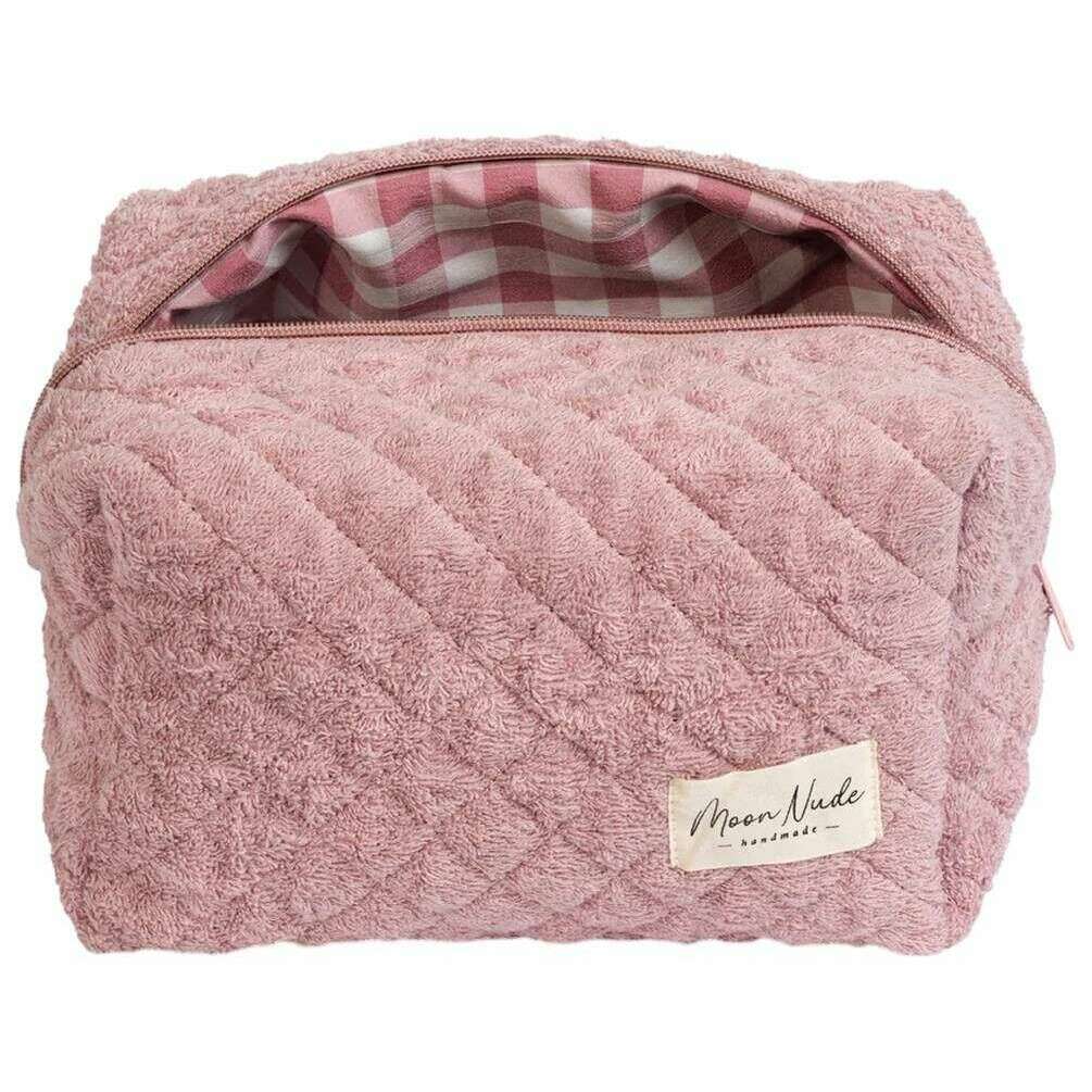 La diseñadora Moon Nude te trae este bolso de mujer 100% algodón en tonos rosa/blanco. Mide 15 cm (alto) x 25 cm (ancho) x 15 cm (profundidad). Se recomienda lavar a mano en agua fría con un detergente suave, o lavar a máquina del revés en ciclo delicado. para mantener esta bolsa en buenas condiciones. Todos los bolsos vienen completos con un embalaje color nude lunar. El neceser grande de maquillaje Moon Nude Blush - rosa/blanco es una necesidad absoluta para tu habitación o bolso de uso diario. Este neceser de maquillaje garantiza mantener todos tus productos más usados ​​juntos y seguros, a la vez que es elegante y elegante con su diseño acolchado hecho a mano.