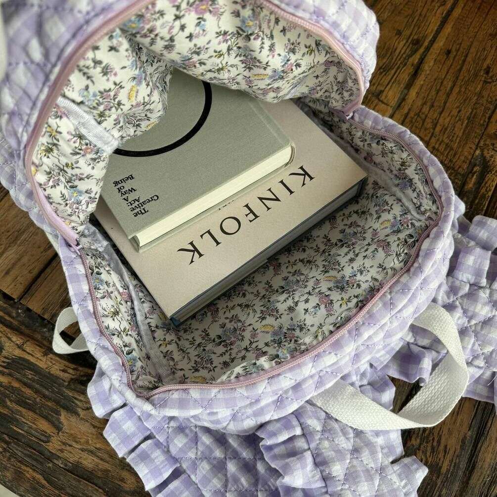 La diseñadora Moon Nude te trae este bolso de mujer 100% algodón en tonos violeta/blanco. Mide 40 cm (alto) x 28 cm (ancho) x 13 cm (profundidad). Se recomienda lavar a mano en agua fría con un detergente suave, o lavar a máquina del revés en ciclo delicado. para mantener esta bolsa en buenas condiciones. Todos los bolsos vienen completos con un embalaje color nude lunar. La mochila Moon Nude Coquette - Púrpura/Blanco presenta un hermoso diseño acolchado hecho a mano. Perfecto para llevar, ya sea para el trabajo o para el uso diario. Este bolso tiene un bolsillo exterior con cremallera, perfecto para cualquier detalle que puedas tener. El interior es espacioso y ofrece un compartimento trasero para su computadora portátil o tableta.
