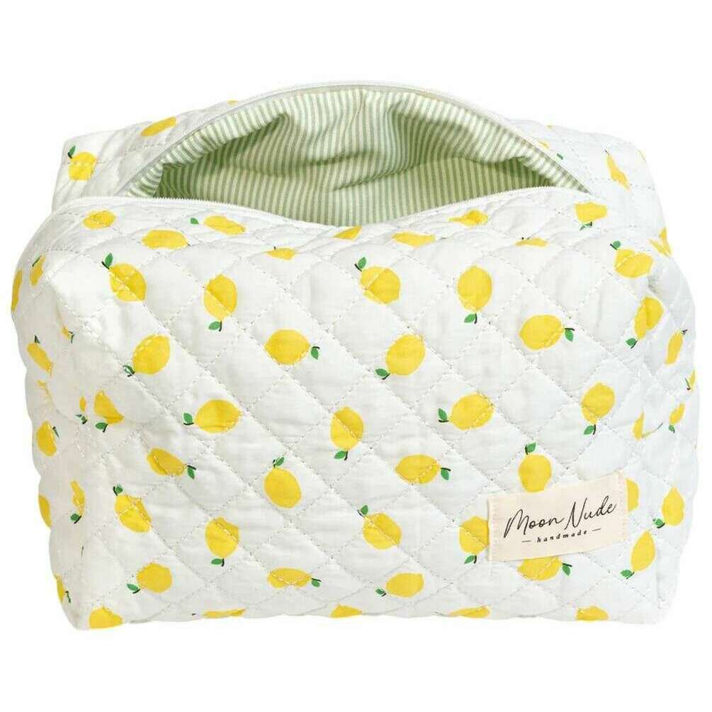 Este neceser de maquillaje grande de color limonada para mujer está diseñado por la marca Moon Nude en color blanco y está confeccionado en 100% algodón. Mide 15 cm (alto) x 25 cm (ancho) x 15 cm (profundidad). Se recomienda lavar a mano en agua fría con un detergente suave, o lavar a máquina del revés en ciclo delicado. para mantener esta bolsa en buenas condiciones. Todos los bolsos vienen completos con un embalaje color nude lunar. El neceser de maquillaje grande Moon Nude Lemonade - Blanco/Amarillo es una necesidad absoluta para tu habitación o tu bolso diario. Este neceser de maquillaje garantiza mantener todos tus productos más usados ​​juntos y seguros, a la vez que es elegante y elegante con su diseño acolchado hecho a mano.