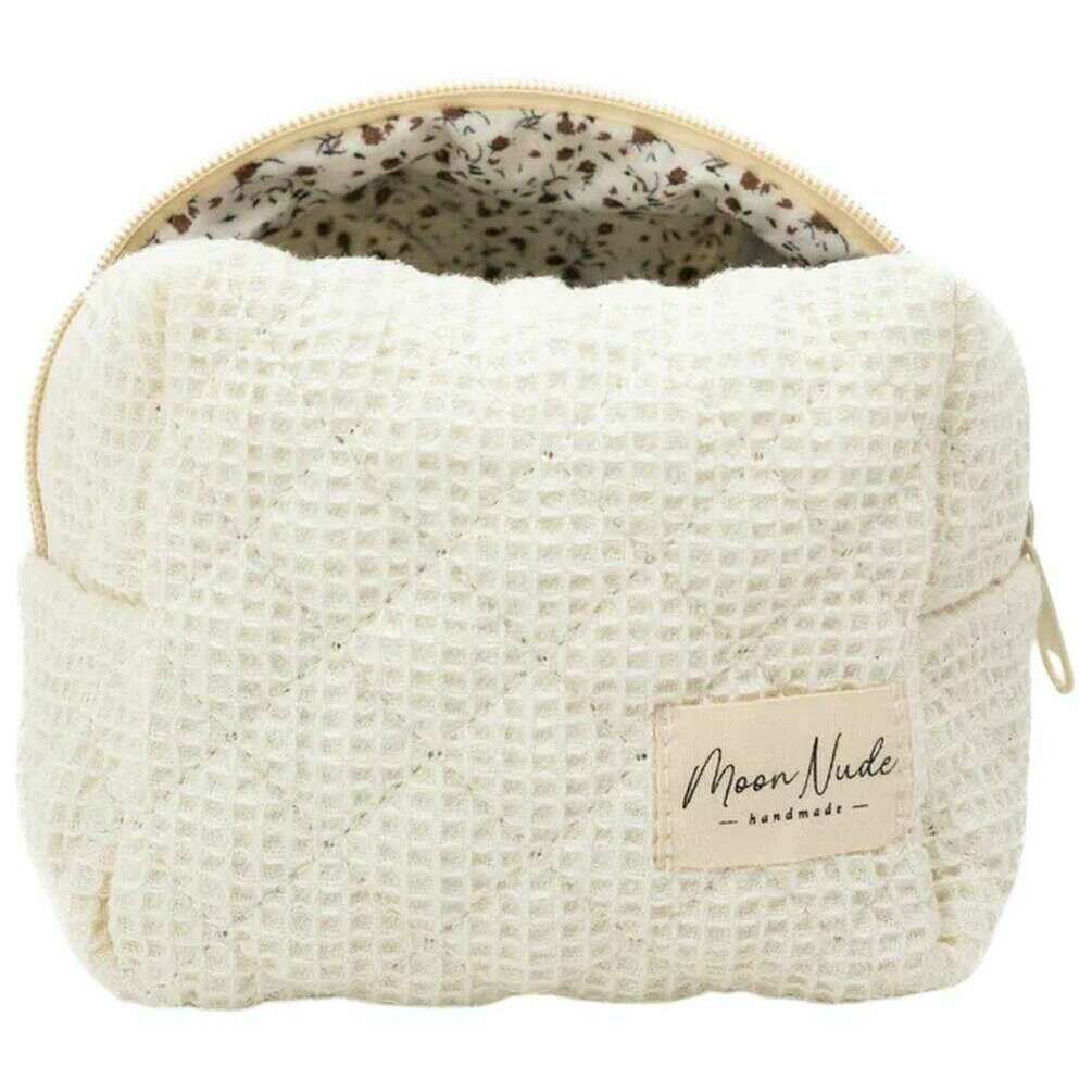 Utilizando crema 100% algodón, este mini neceser de maquillaje de Moon Nude es perfecto para las mujeres y es imprescindible. Mide 13 cm (alto) x 15 cm (ancho) x 11 cm (profundidad). Se recomienda lavar a mano en agua fría con un detergente suave, o lavar a máquina del revés en ciclo delicado. para mantener esta bolsa en buenas condiciones. Todos los bolsos vienen completos con un embalaje color nude lunar. El minineceser de maquillaje Moon Nude - Crema es una necesidad absoluta para tu habitación o bolso de uso diario. Este neceser de maquillaje garantiza mantener todos tus productos más usados ​​juntos y seguros, a la vez que es elegante y elegante con su diseño acolchado hecho a mano.