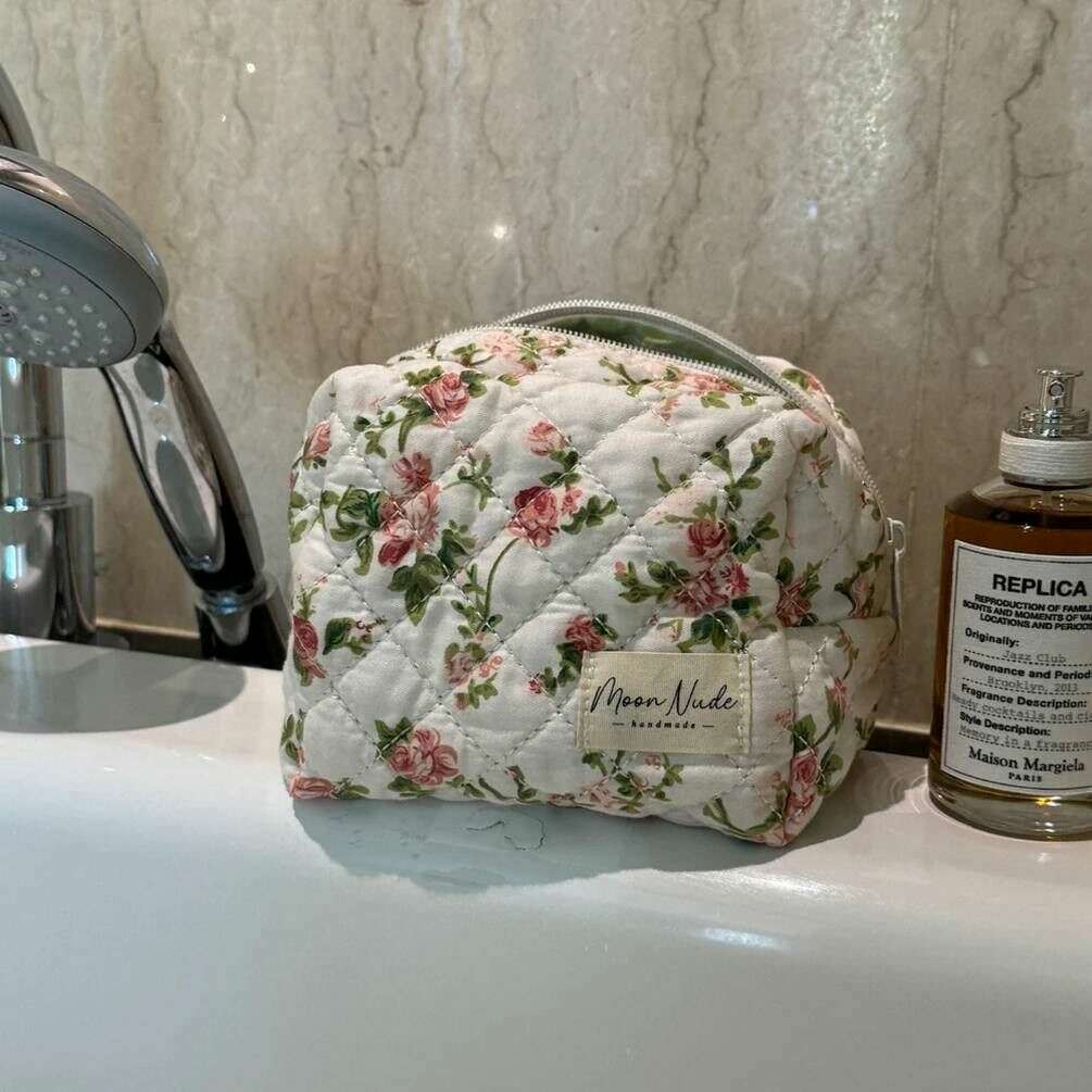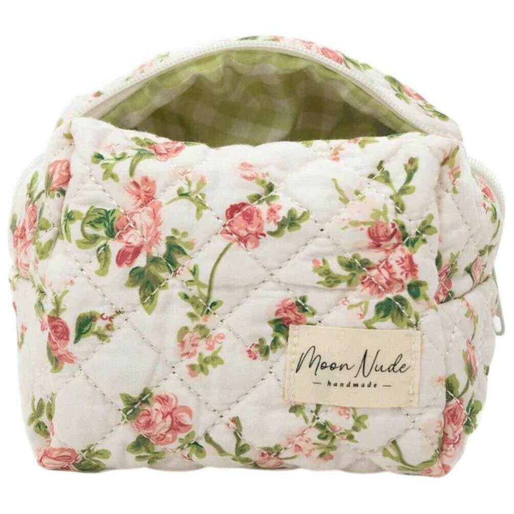 Presentado por la marca Moon Nude, este mini neceser de maquillaje rosa para mujer en color blanco, rosa y verde está hecho de 100 % algodón. Mide 13 cm (alto) x 15 cm (ancho) x 11 cm (profundidad). Se recomienda lavar a mano en agua fría con un detergente suave, o lavar a máquina del revés en ciclo delicado. para mantener esta bolsa en buenas condiciones. Todos los bolsos vienen completos con un embalaje color nude lunar. El minineceser de maquillaje Moon Nude Roze - Blanco/Rosa/Verde es una necesidad absoluta para tu habitación o tu bolso diario. Este neceser de maquillaje garantiza mantener todos tus productos más usados ​​juntos y seguros, a la vez que es elegante y elegante con su diseño acolchado hecho a mano.